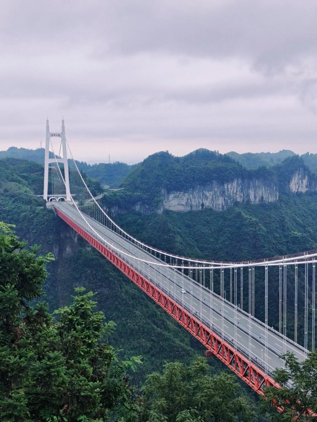 漫步观光通道、走上惊险玻璃栈道,凭栏远眺,既能切身感受大国工程的磅礴气魄,又能将矮寨公路奇观那连绵曲折的45道急弯尽收眼底。 这里不仅是人类造桥史上的建筑丰碑,更是云端观景、高空挑战、旅游打卡的网红胜地湖南湘西
