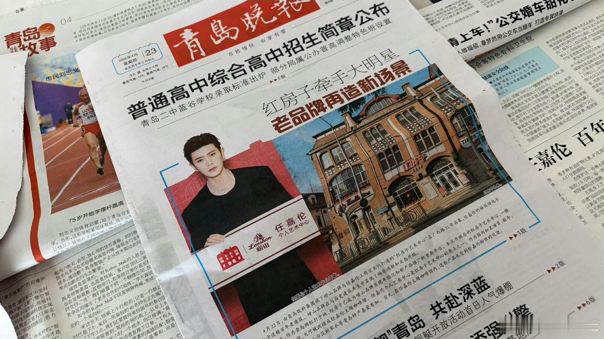 青岛各大报纸都报道了任嘉伦个人艺术中心,并且登上了头版,来自主流媒体的认证,这排面好牛吧!