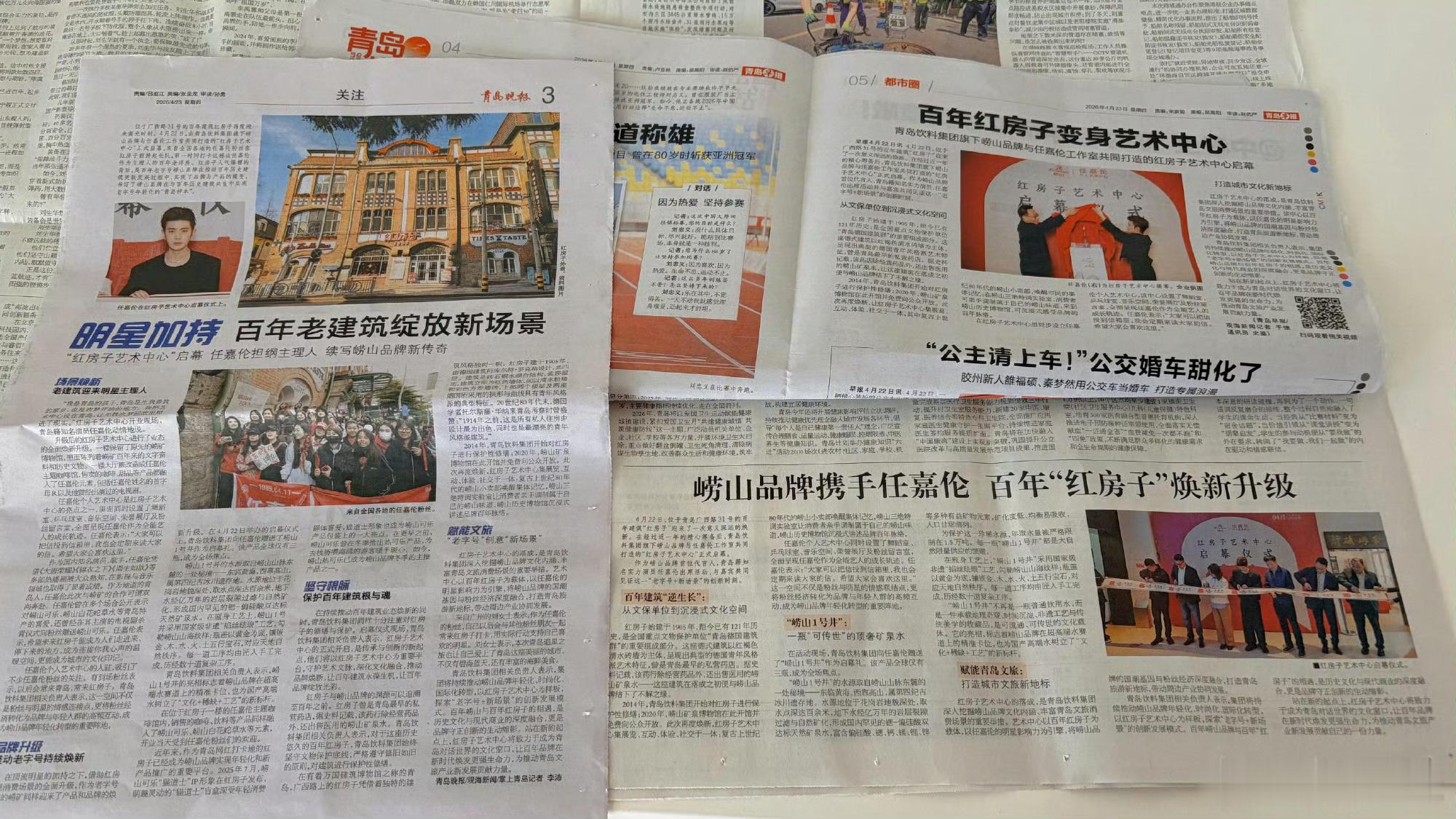青岛各大报纸都报道了任嘉伦个人艺术中心,并且登上了头版,来自主流媒体的认证,这排