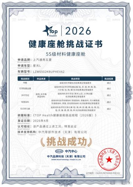 安全始终是家庭出行的关注点。星光L将安全理念贯穿整车设计,荣获行业首发5S健康座舱认证,创新采用国际领先的“以竹代塑”环保方案,从源头减少有害挥发。同时,星光L积极践行全流程严苛管控,采用六大环保材质、三级气味检测、五大环保工艺,层层把关、杜绝有害残留,全方位守护家人健康。