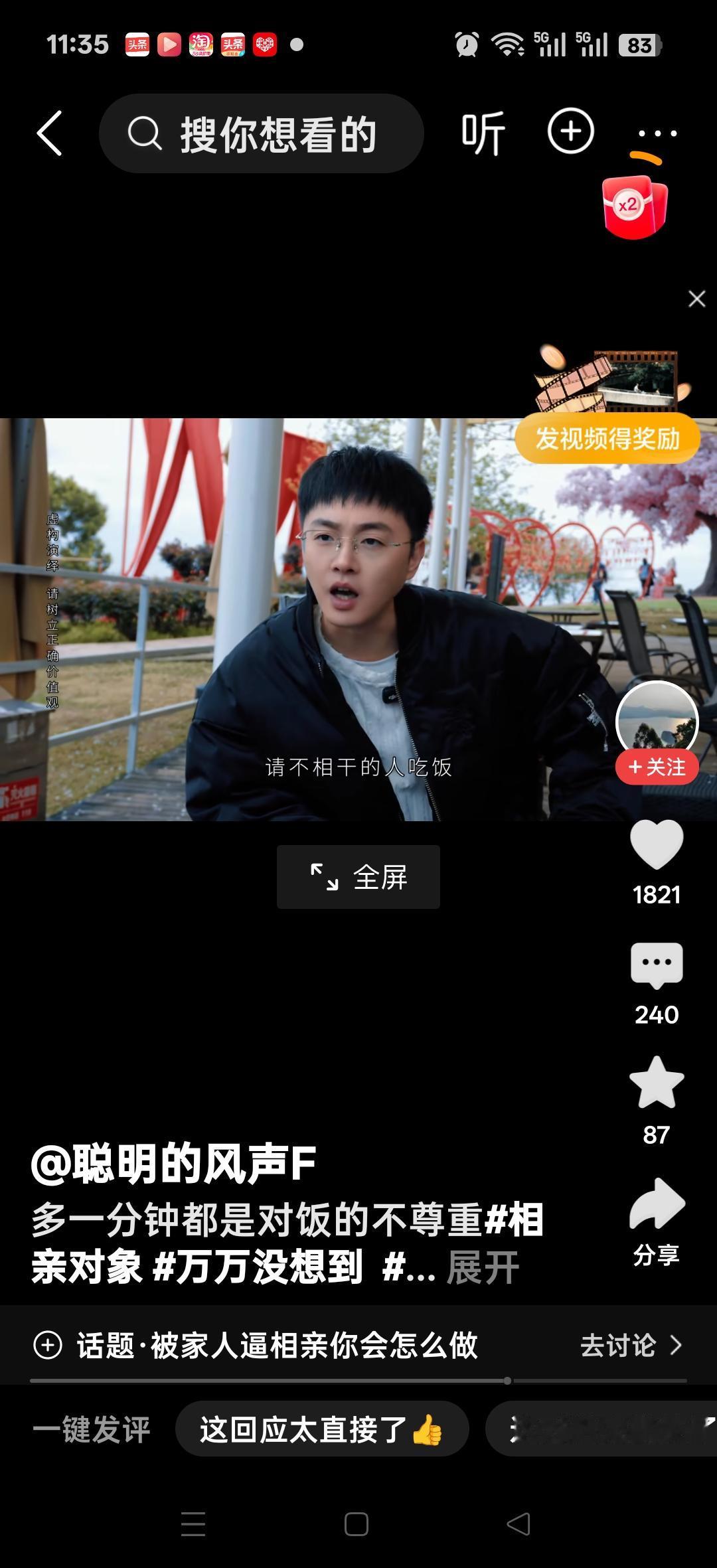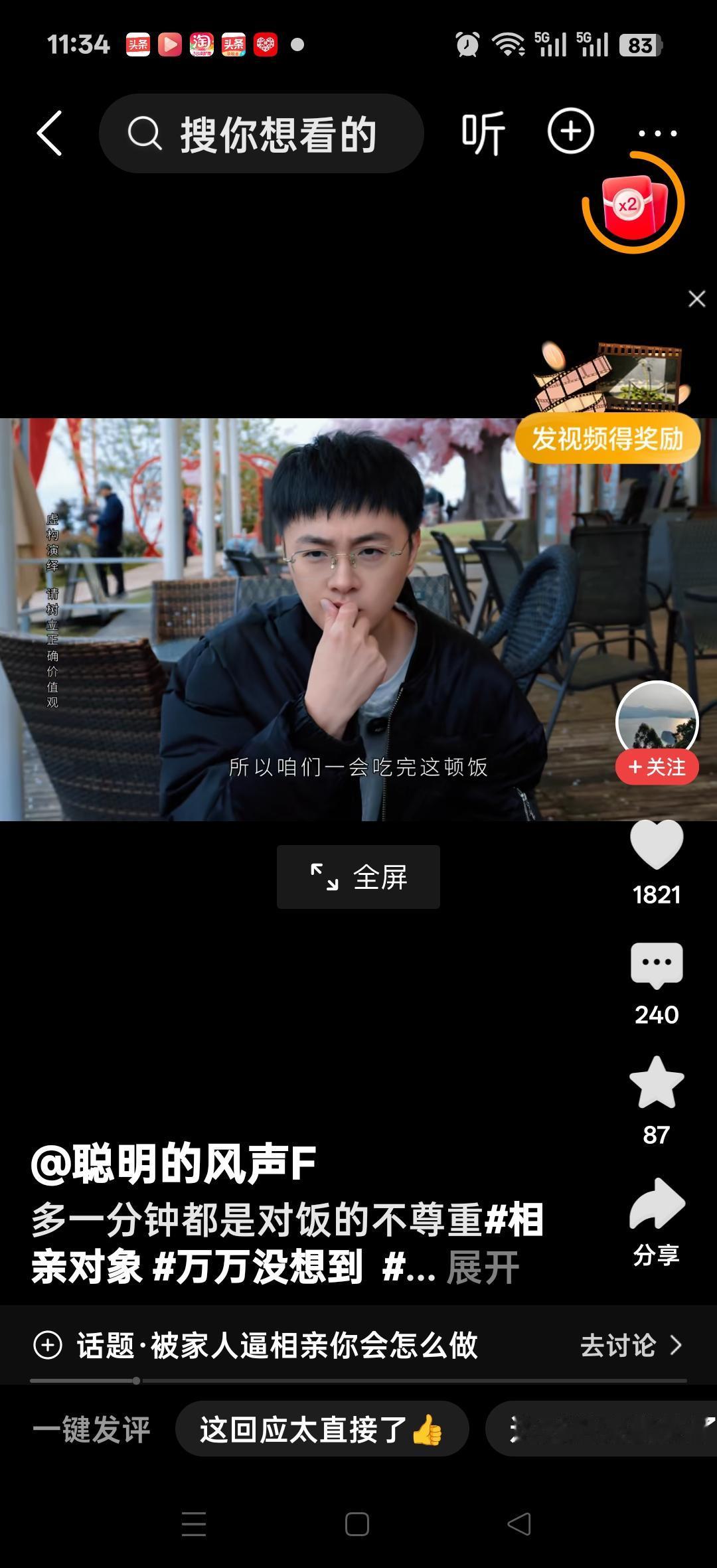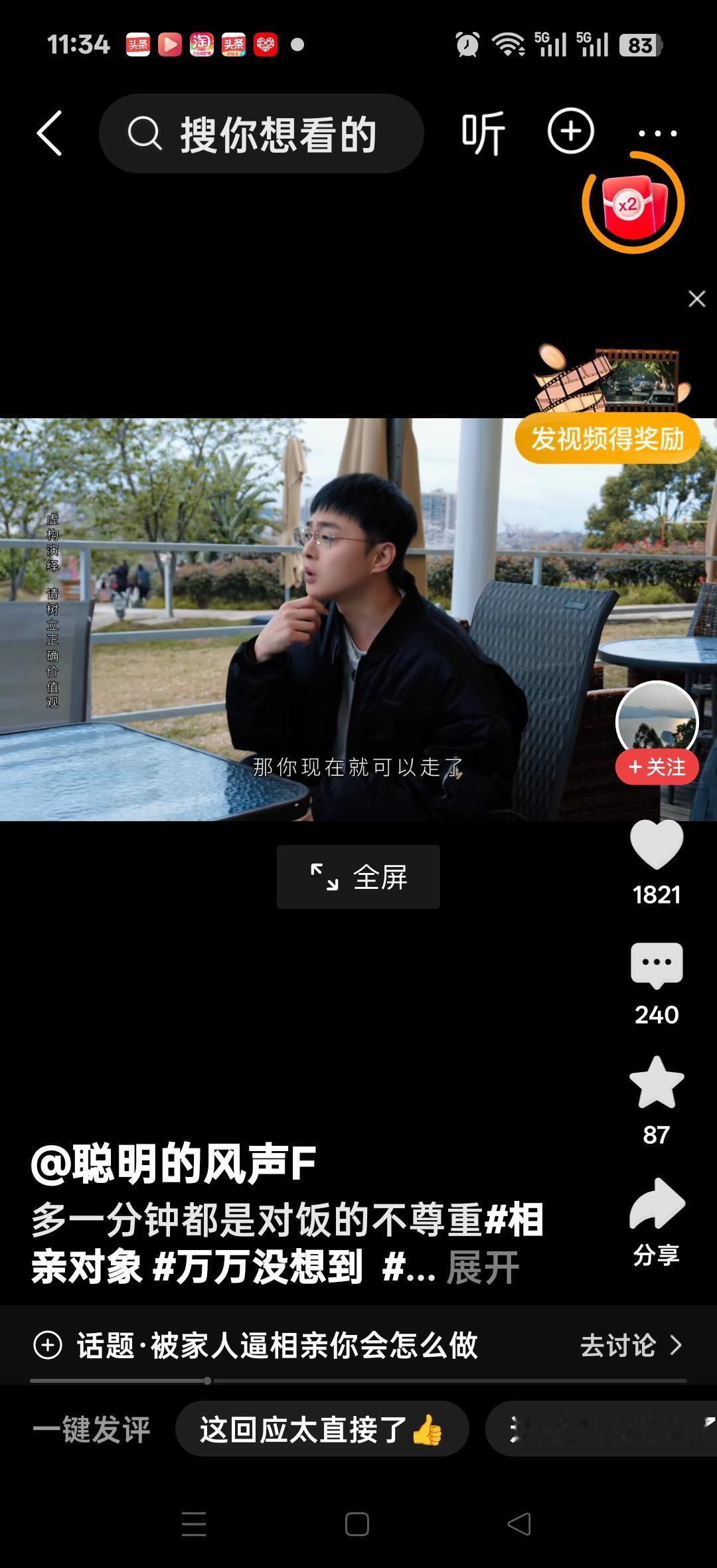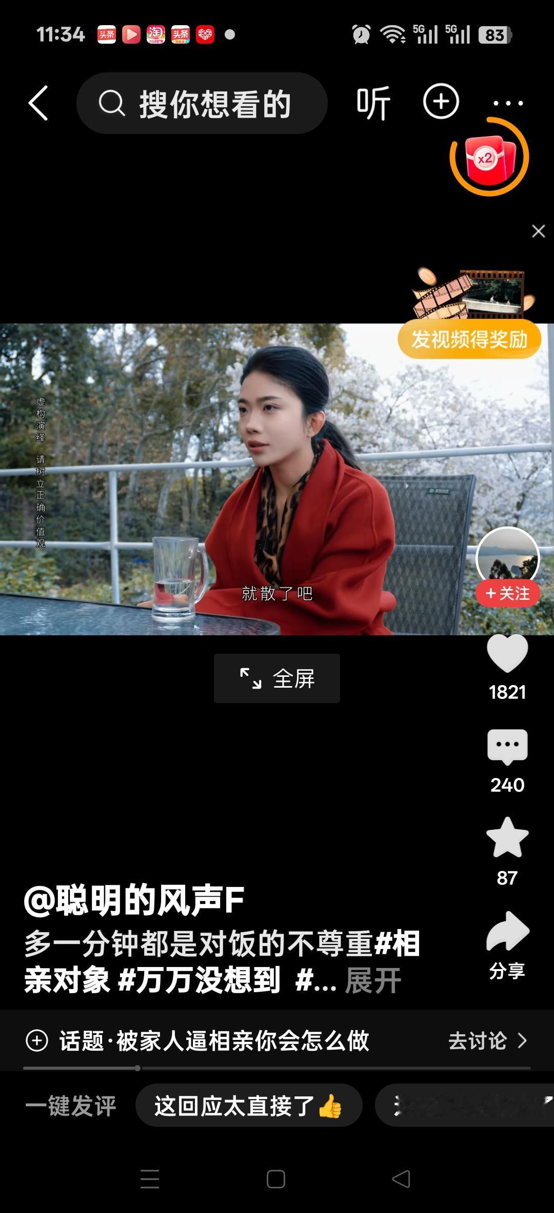 女子:我其实不想结婚,我是被家里逼着来的,所以一会儿吃完这顿饭,咱们就散了吧?男子:现在就散了吧!做好的打包,没做的不要了。网友说:干脆利落,果断决然,头脑清晰,有脑也有距离,小伙子能干大事!有的人说:哈哈,男孩说的对,我闲着没事干,请不相干的人吃饭那?本来想站着要饭,没想到对方不配合。有的人说:小伙子,明智之举,小伙子好样的,女人千万别把自己太当回事了,看什么年代了,男人当舔狗的时代结束了,蹭吃蹭喝还趾高气扬的,这下尴尬了!有的人说:天外有天,人外有人,不要自视清高,真不想来,应该想其他办法,真正素未平生相聚说话请审视分寸…,大家说是这样的吗?