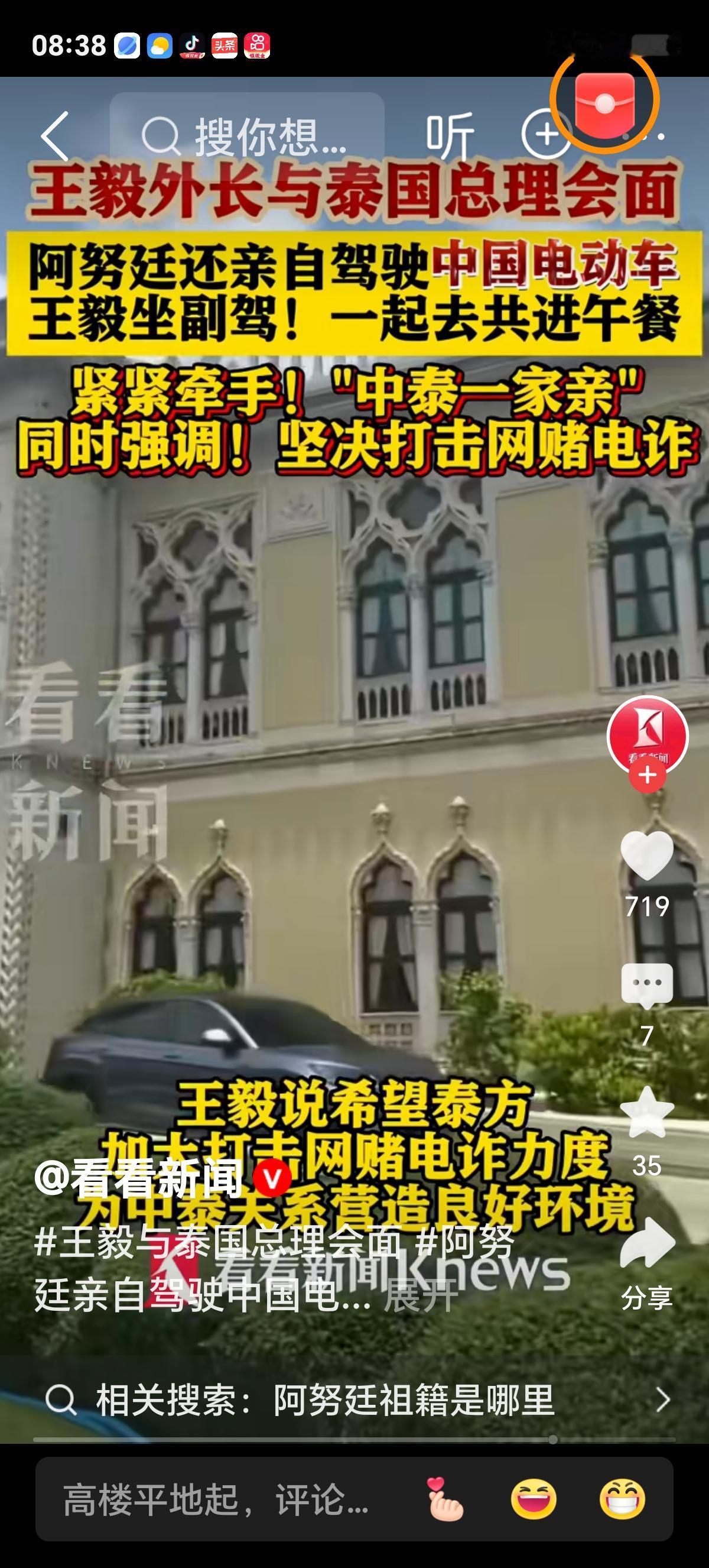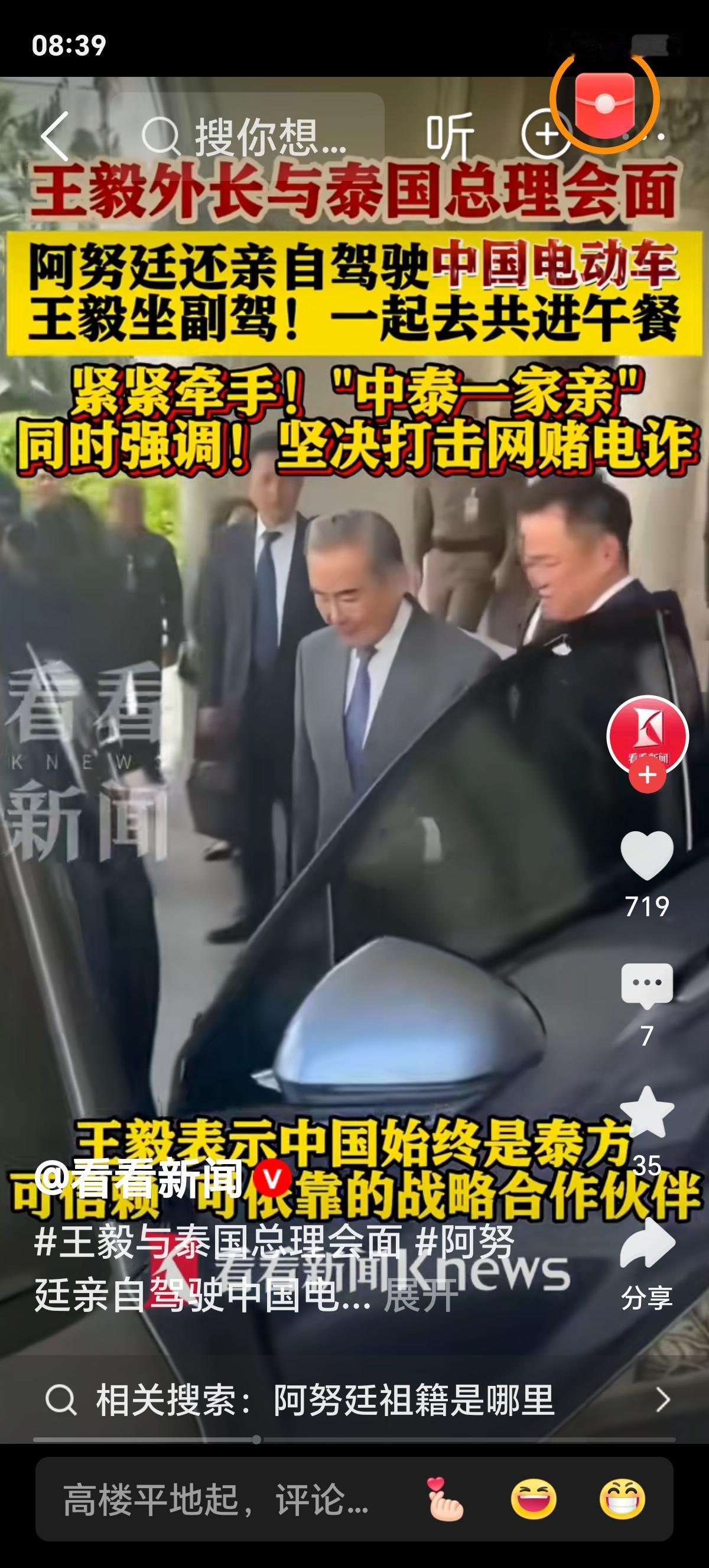 泰国总理阿努廷亲自开车,载着王毅外长穿行曼谷街头——这一幕最近刷屏全网!更让人热血沸腾的是,他放弃了老牌豪车劳斯莱斯,偏偏选了一辆中国比亚迪电动车,全程从容又体面 。一国总理用中国车当外交座驾,这哪里是简单的代步?分明是中国智造的硬核实力,在国际舞台上狠狠“出圈”!
