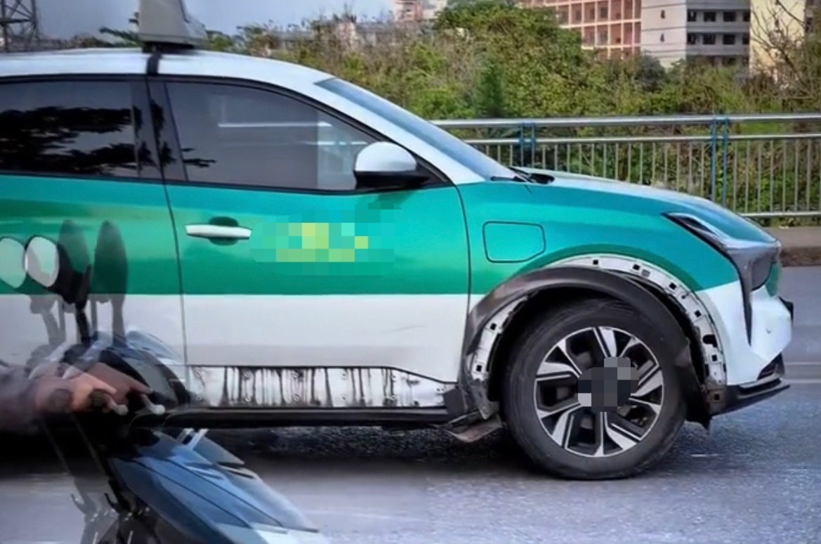 4月24日,网友反映:玉林一出租车撞到限宽墩车被刮坏了,司机师傅你开那么快干嘛呢