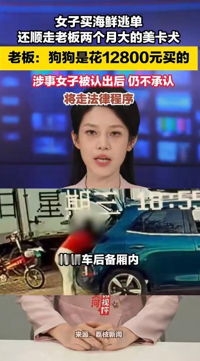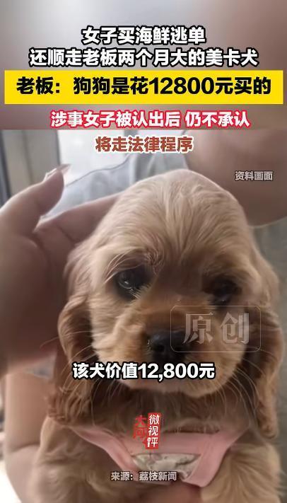 活不起!河北秦皇岛一名女子在店内买海鲜后,趁老板不注意将汽车后备箱内一只两个月大的美卡犬抱走,女子抱着狗拿着海鲜就走,连买海鲜的钱都没有支付。小狗主人万先生说:这只两个月大的美卡犬价值12800,当时因为怕小狗在车里闷坏了,特意把后备箱打开让它透气。