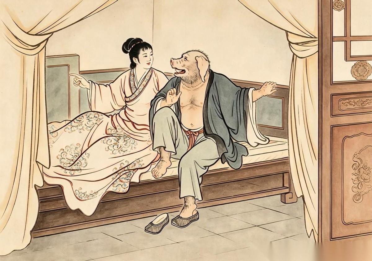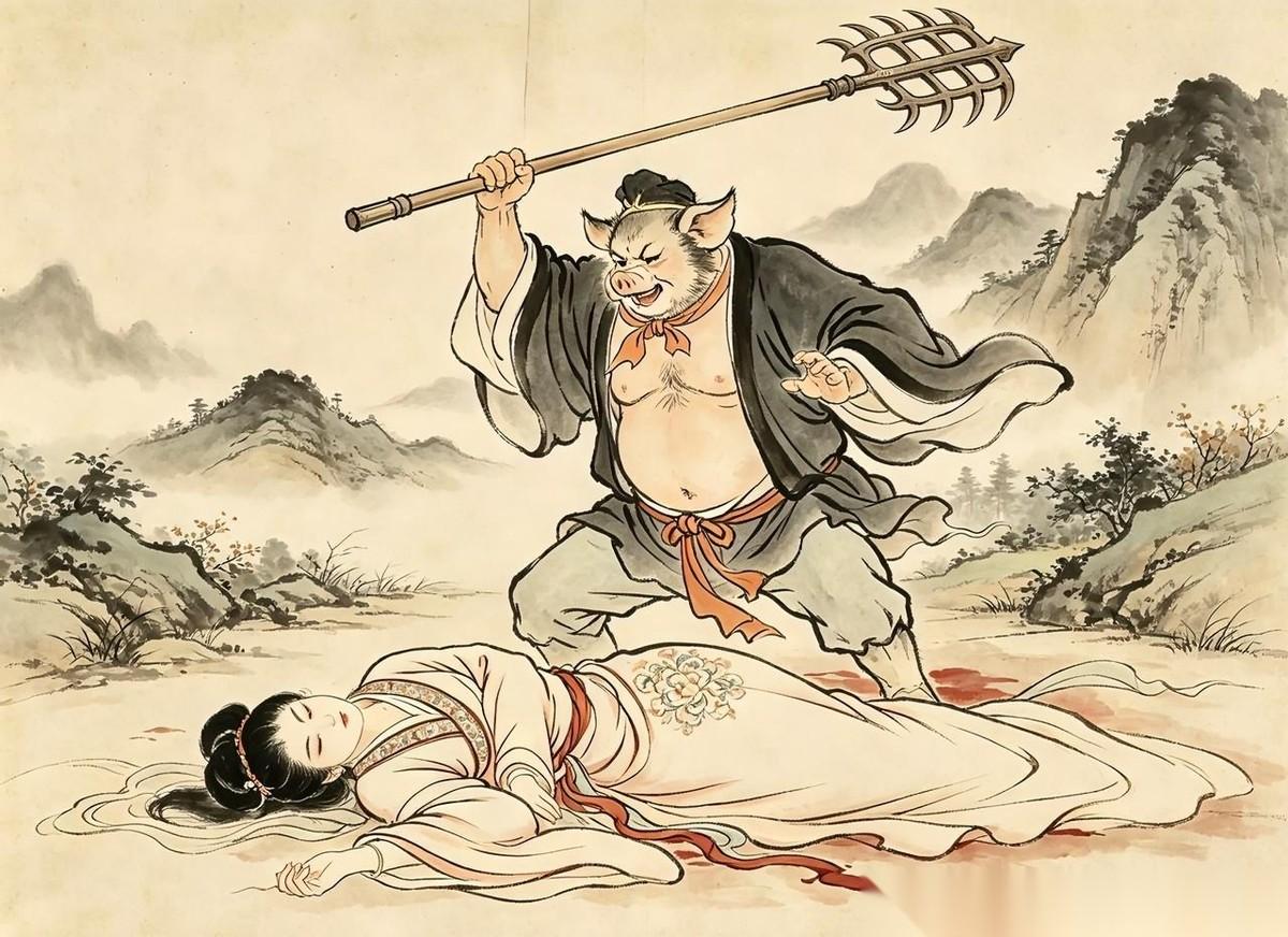 孙大圣棒子底下的亡魂,基本都是吃人的恶妖,那叫为民除害。你再看老猪这三笔账:害死生母、榨干发妻、羞辱无辜女妖。桩桩件件,全是为了填饱自己的私欲。