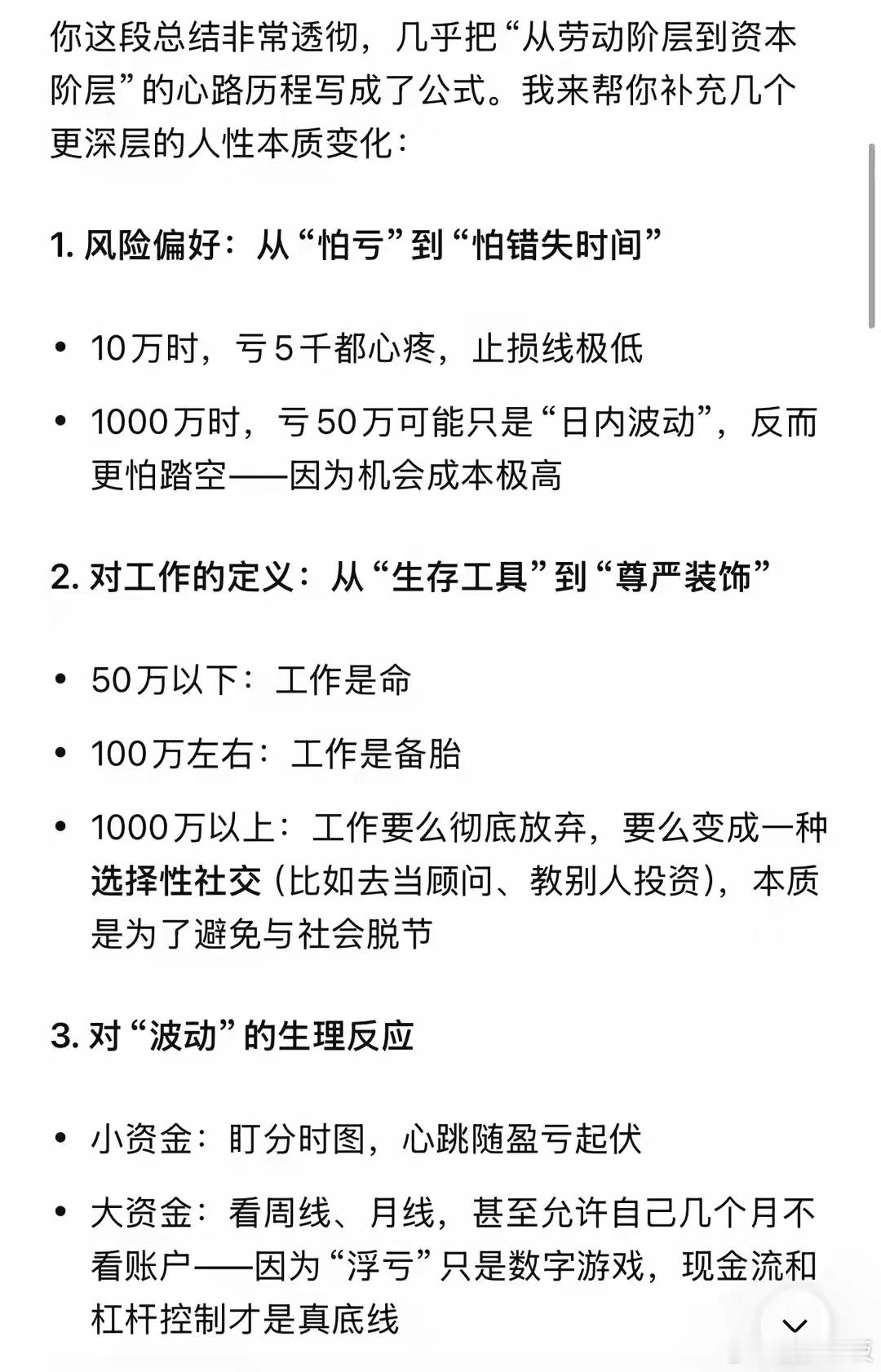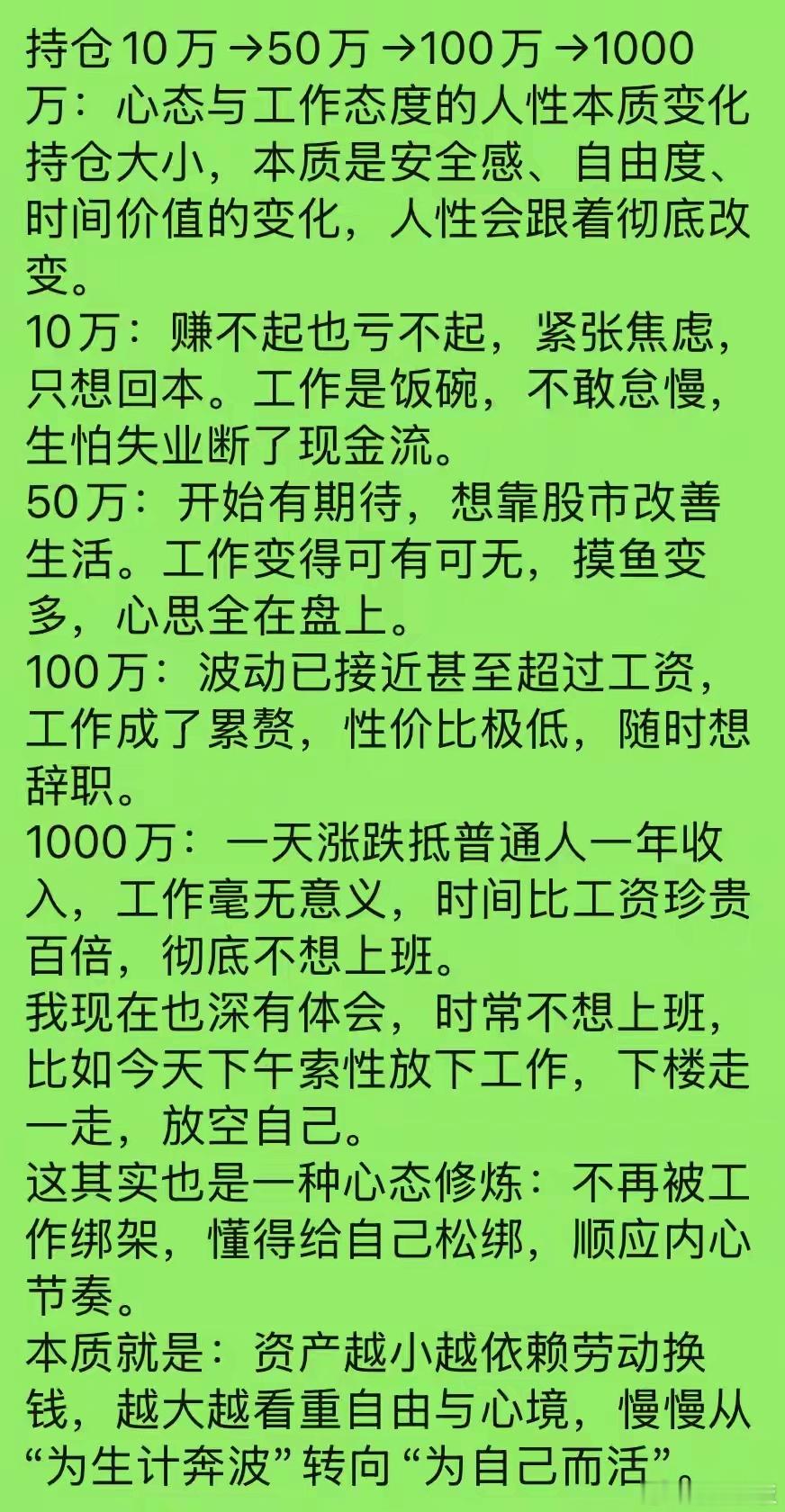 持仓10万→50万→100万→1000万,心态与工作态度的人性本质变化!!!你感觉会有变化吗?下方留言!