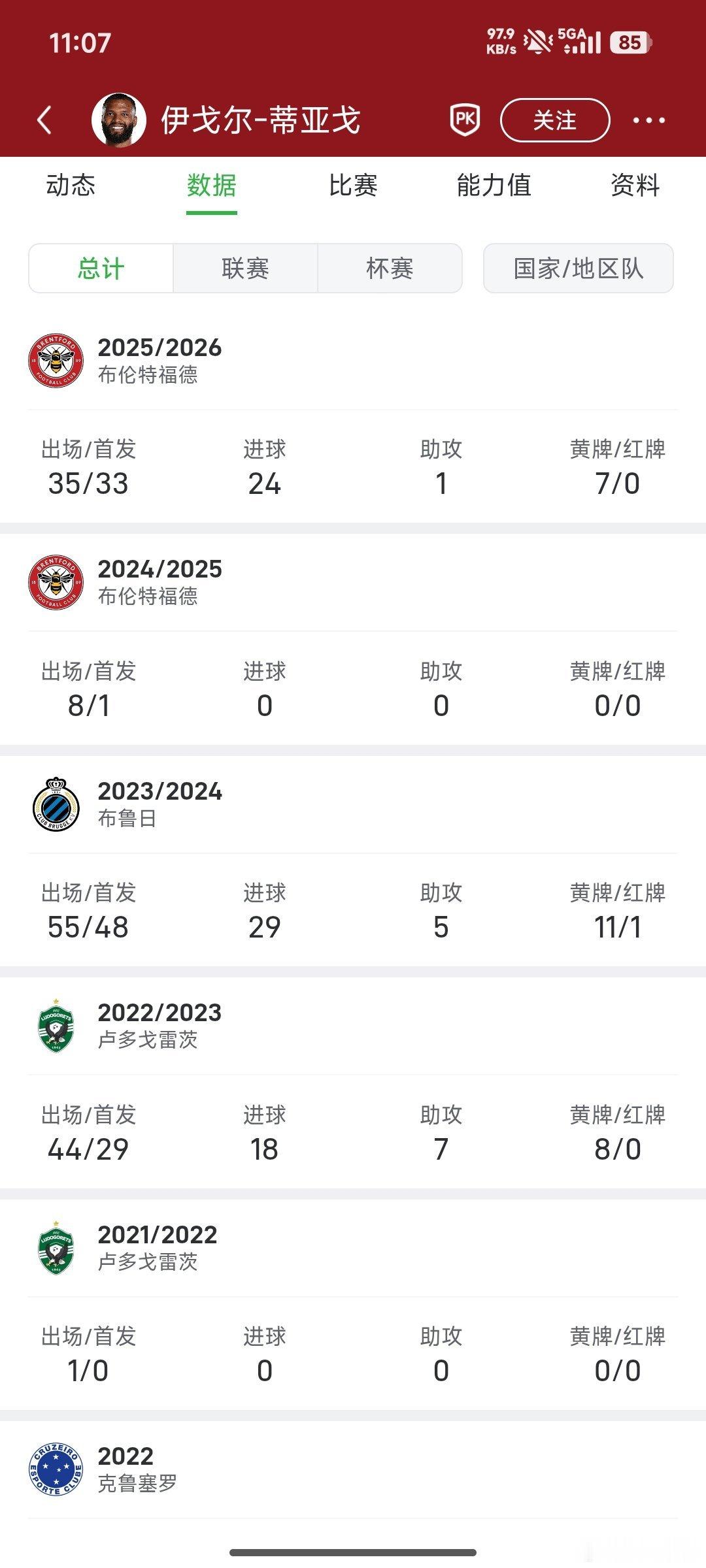 蒂亚戈四年前还在保加利亚踢球,在保加利亚适应了一年后,打出18+7的表现1100万加盟布鲁日,然后在比利时继续炸裂,赛季29+5,随后以打破CDK记录的转会费转会英超(那年夏天村长翻数据的时候就发现了他,不过已经转会了)。在英超的第一年他遭遇十字韧带伤病,本赛季复出后继续炸裂,截止目前英超打进21球,位列射手榜次席,也入选了巴西国家队。