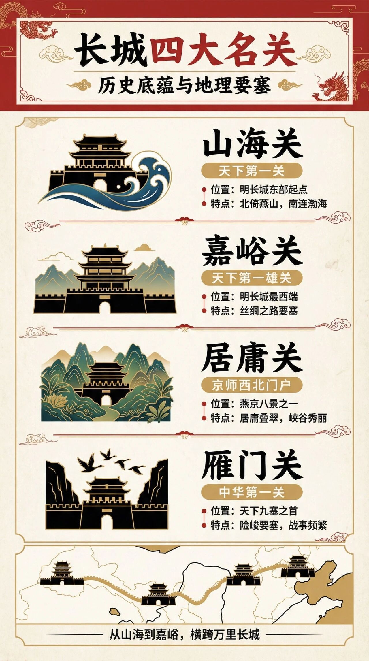 这四个关口因其独特的地理位置和深厚的历史底蕴,被公认为长城上最负盛名的代表。