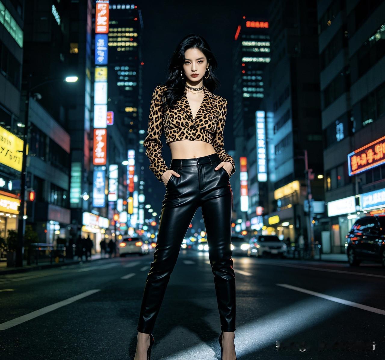 1. 豹纹 + 黑色:经典显瘦、酷感拉满,闭眼穿