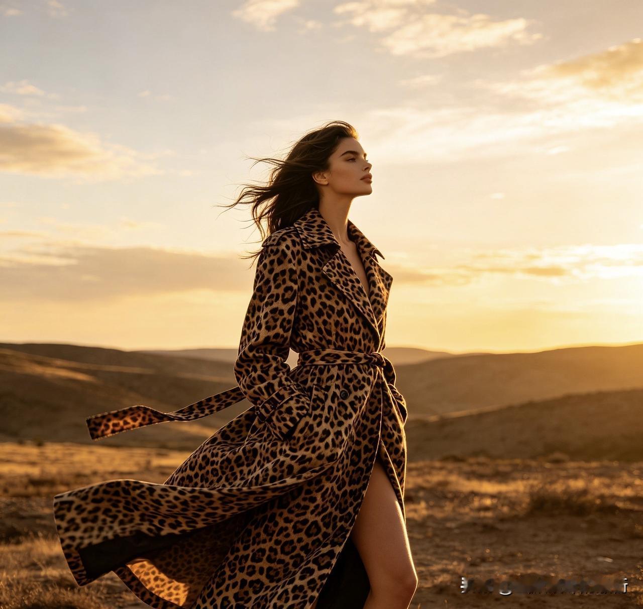 • 长款豹纹大衣