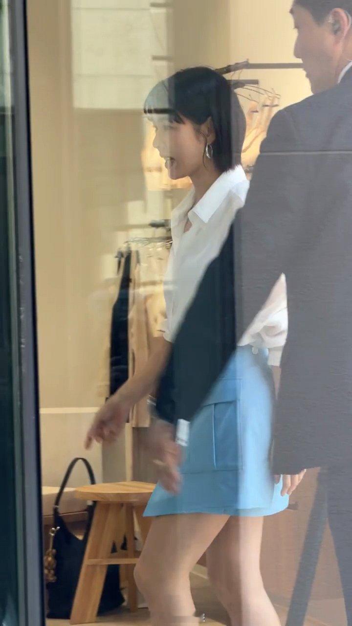 偶遇孙艺珍线下活动孙艺珍短发白衬衫中国网友偶遇孙艺珍线下活动,这个短发真不是谁都