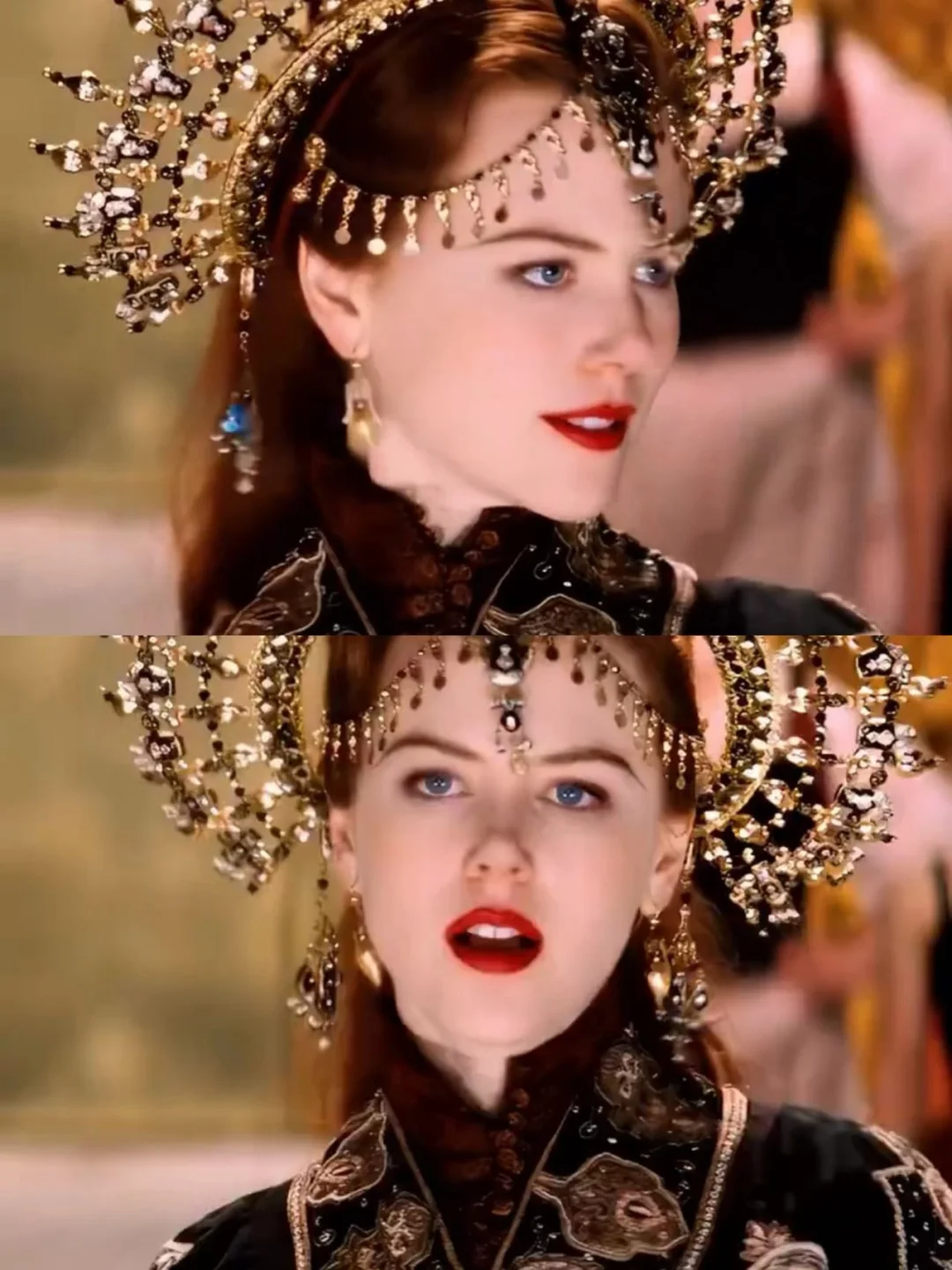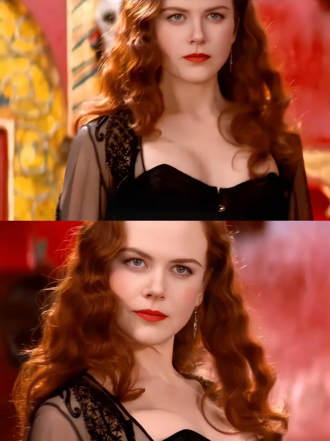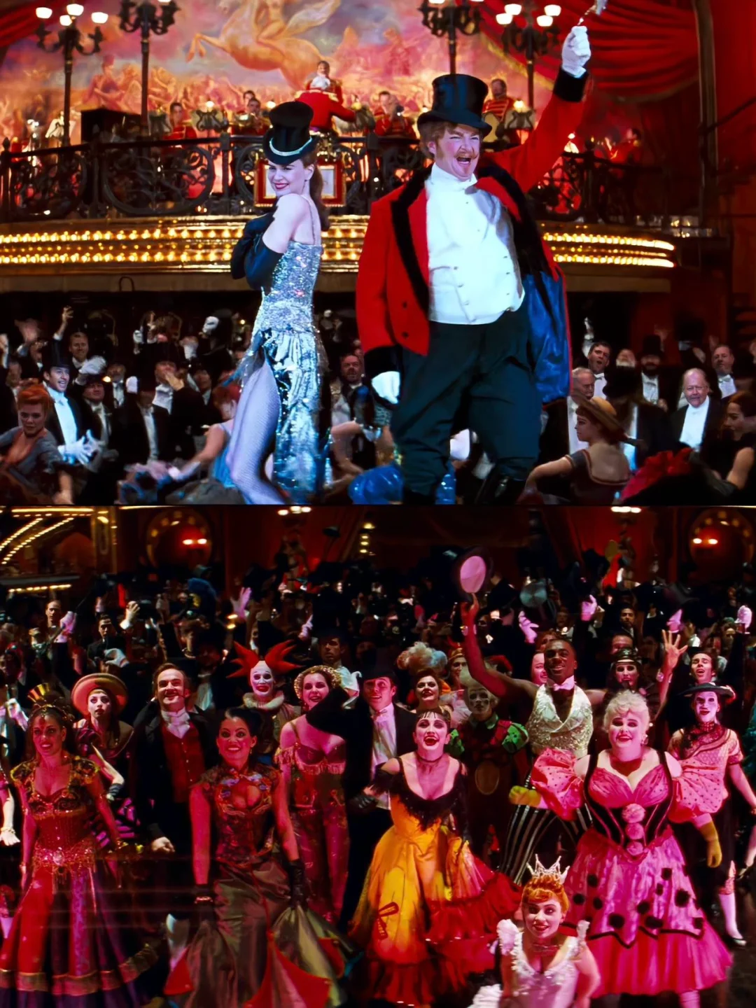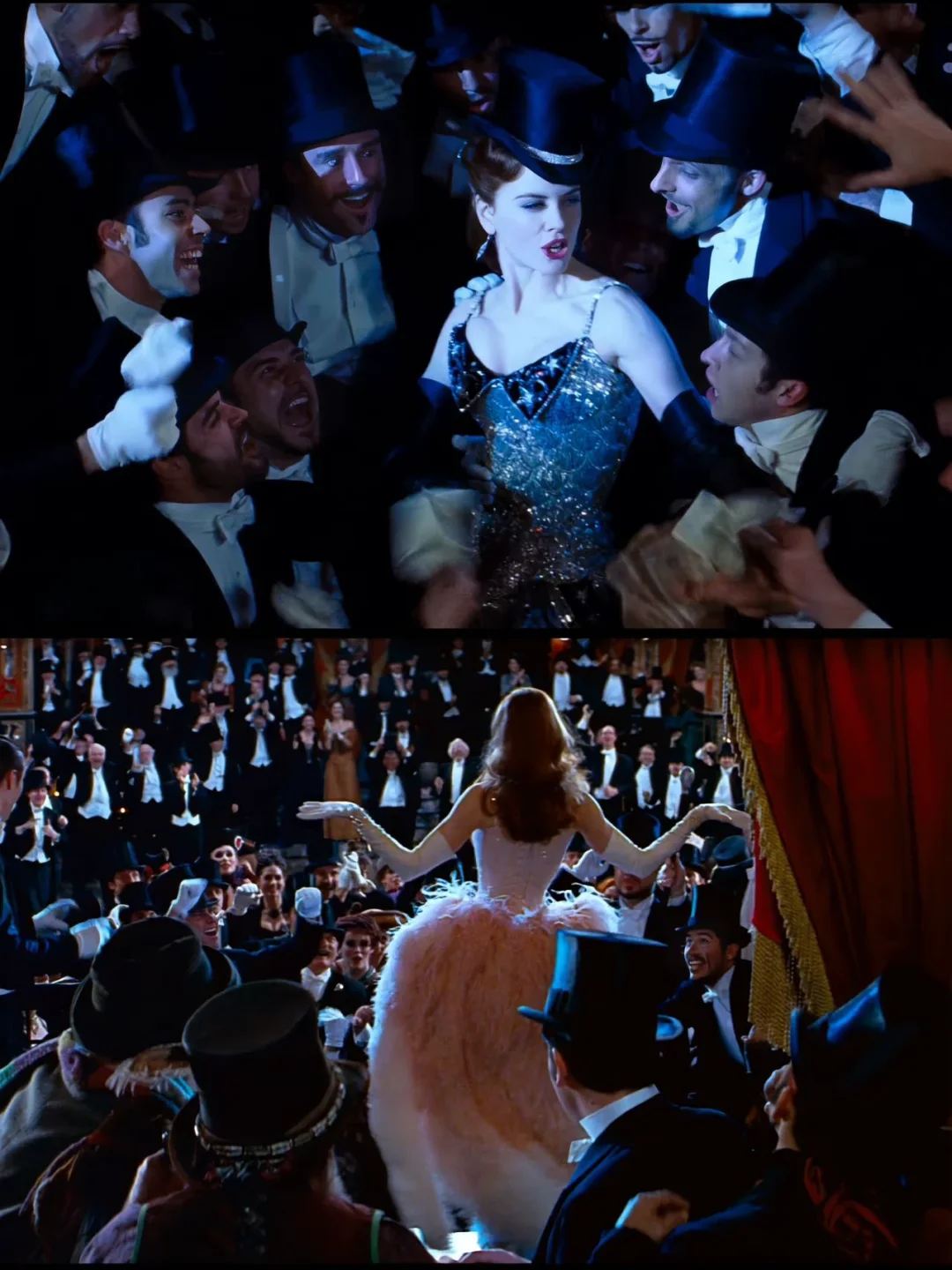 整部影片的视觉什么真的很绝,即便放到现在依旧吊打一众大片。饱和浓烈的色彩、华丽极致的服饰、节奏炸裂的歌舞、氛围感拉满的镜头剪辑。每一幕都像复古油画,热烈又绚烂,盛大到让人移不开眼。