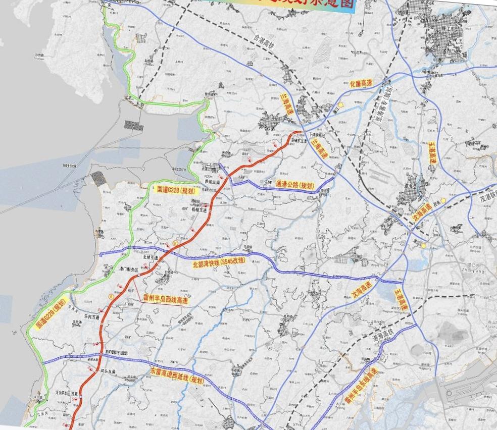 规划中的北部湾快线(麻章—遂溪—北部湾),全长约50公里,按一级公路双向四车道标准建设。处于雷州半岛中部,东西走向,起点:湛江市麻章区 西城快线三期交叉口