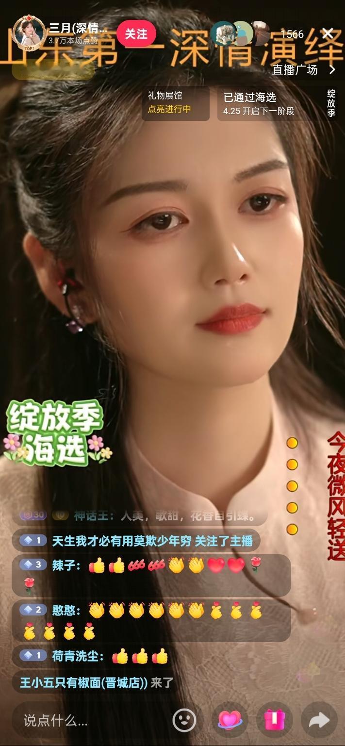刷到这个女主播,评论区最多的就是"人美歌甜"。估计这个主播可能开播不久,感觉美颜