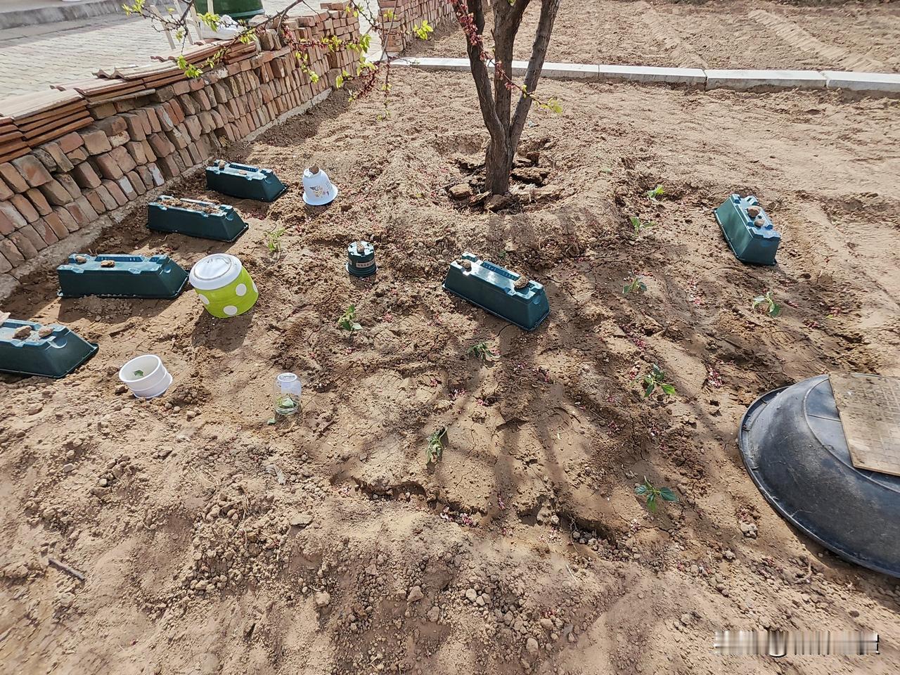 网购的菜苗昨天刚栽下,今天风有点儿大,为了确保它们能顺利缓苗,把家里坛坛罐罐,盆盆钵钵都用上了,希望它们能争点儿气,不辜负我的辛苦。[偷笑][偷笑][偷笑]农家蔬菜幼苗