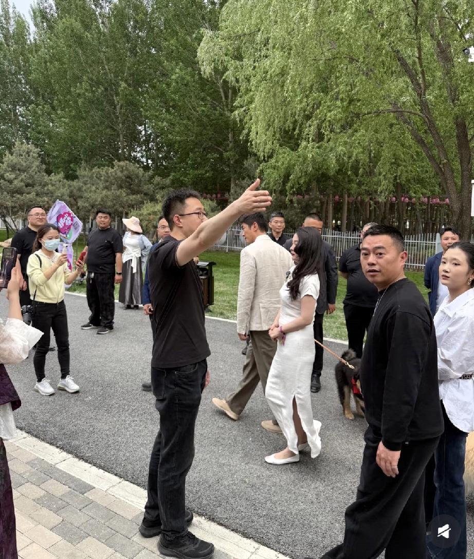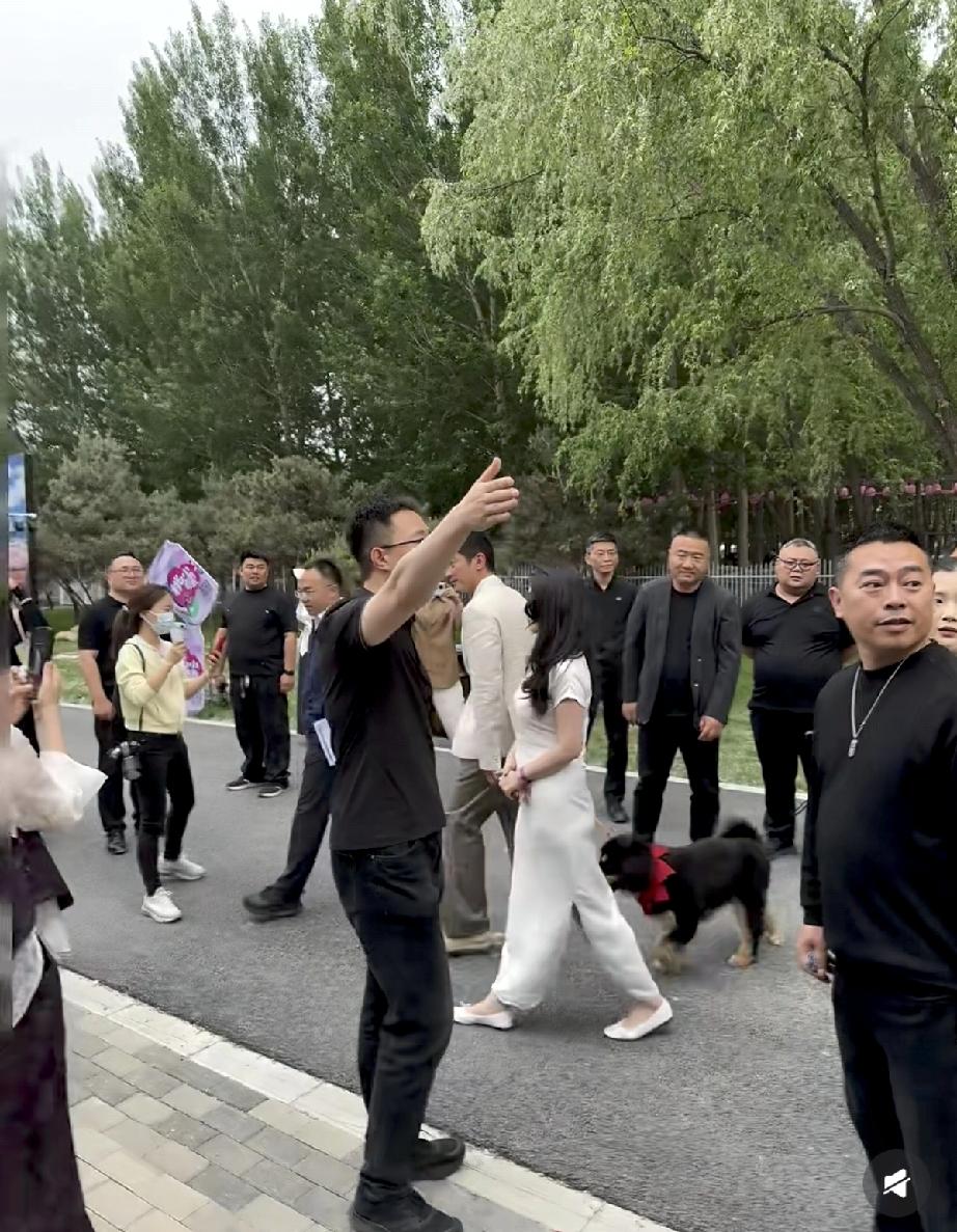 本次在平谷举办的活动,想必是跟狗狗有关的,因此霍思燕就带着自己救助的狗狗过来了,把杜江也带上了。