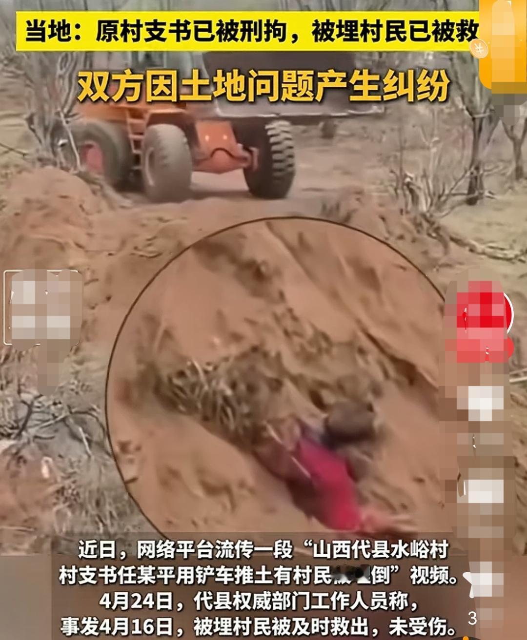 这是在网上发酵的,骇人听闻的真人真事。 山西代县水峪村当了10年的村书记,现已退休回家了。但在与村民间的土地归属方面,产生了分歧,在没有解决好的前提下,这位曾经是书记的任x平,竟动用了铲车开始施工。