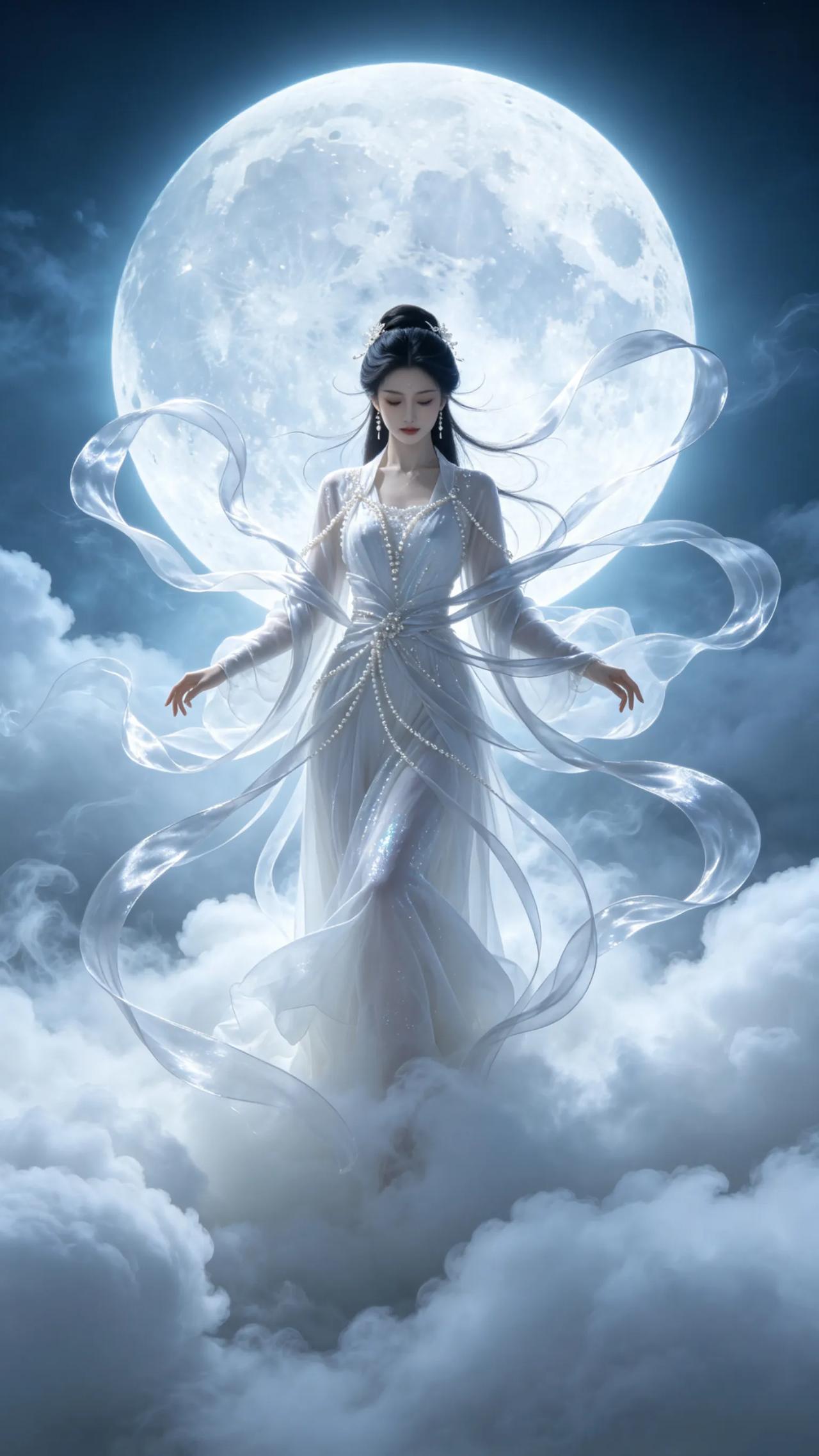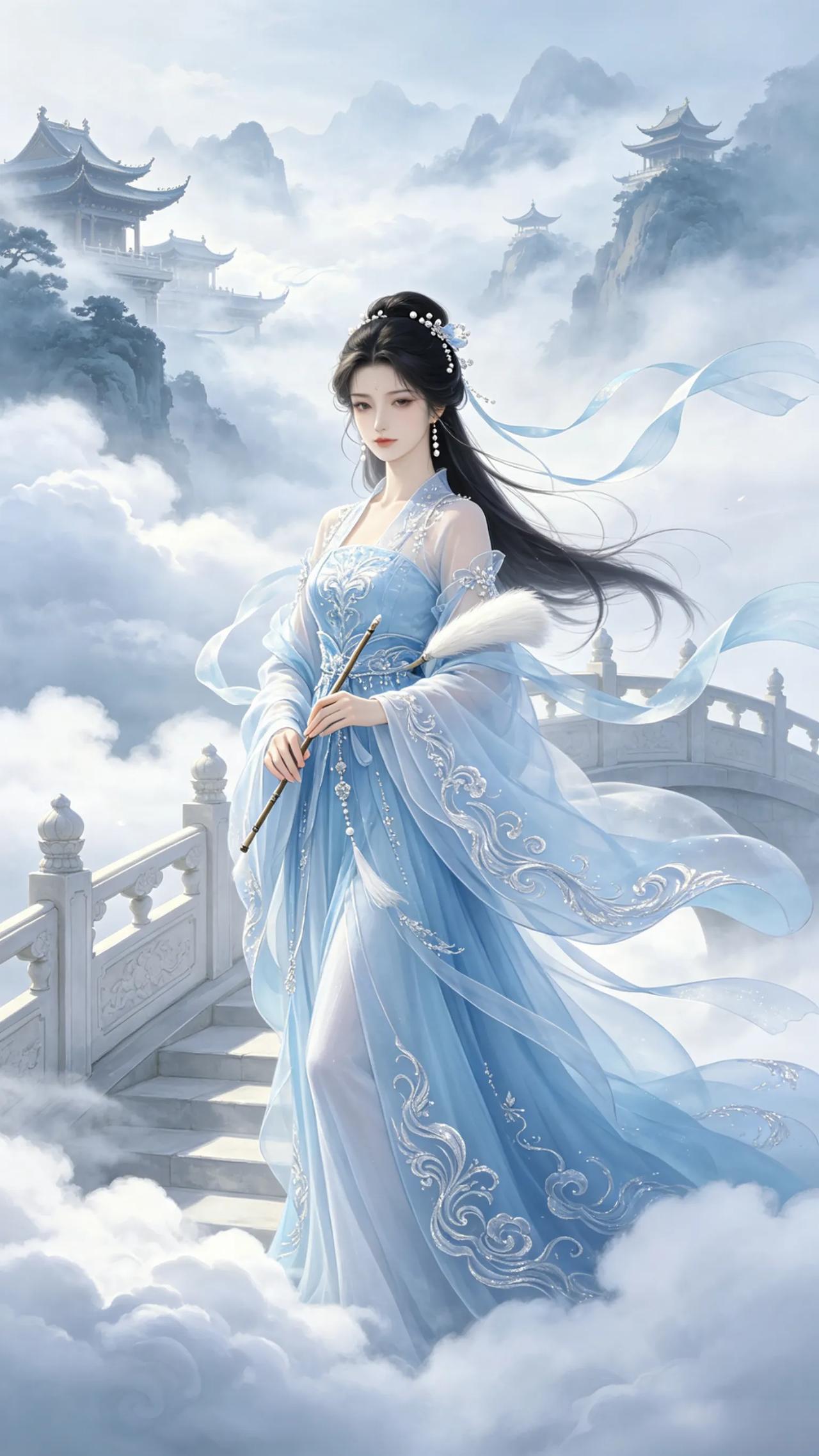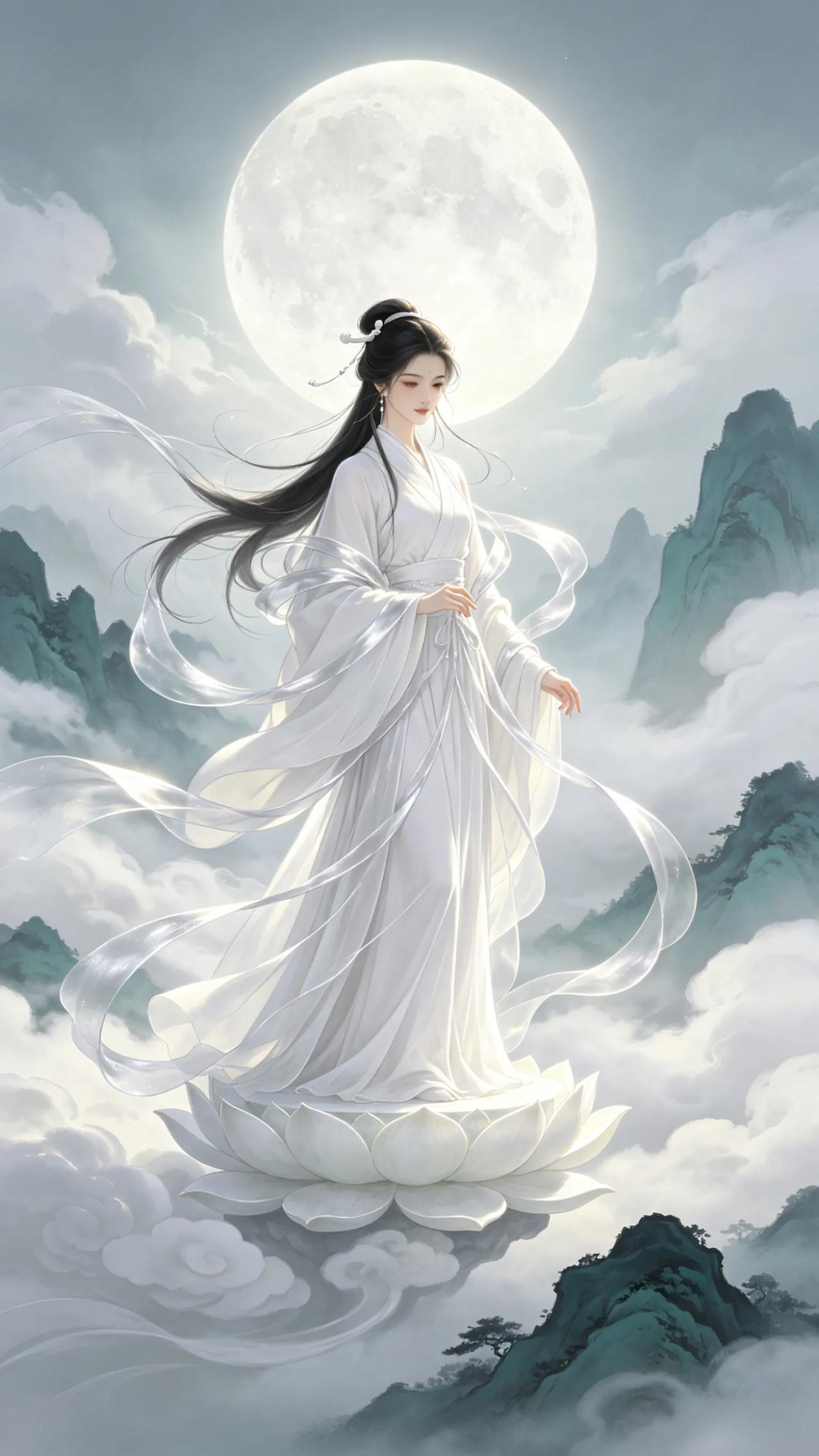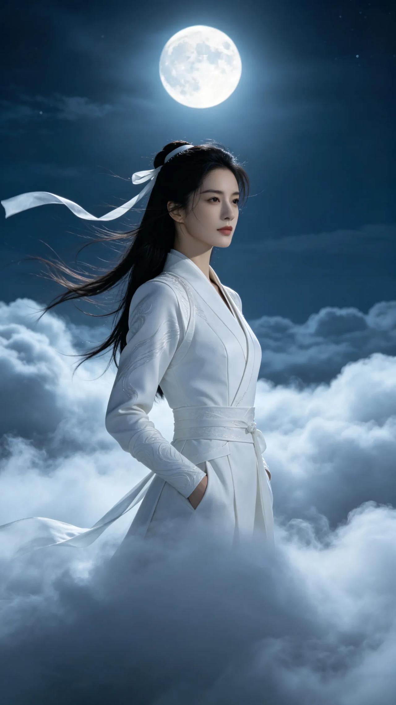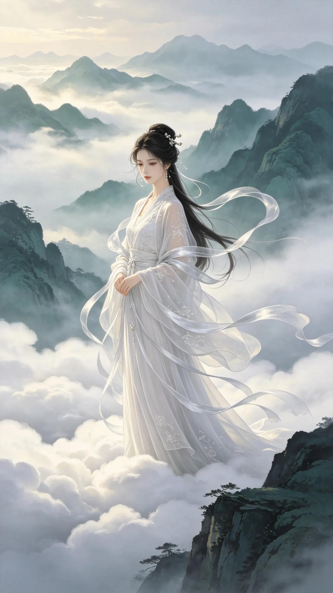 这组AI绘制的仙侠风壁纸自带清冷高级感,云雾缭绕,丝带飘逸,在月光映衬下更显唯美动人。