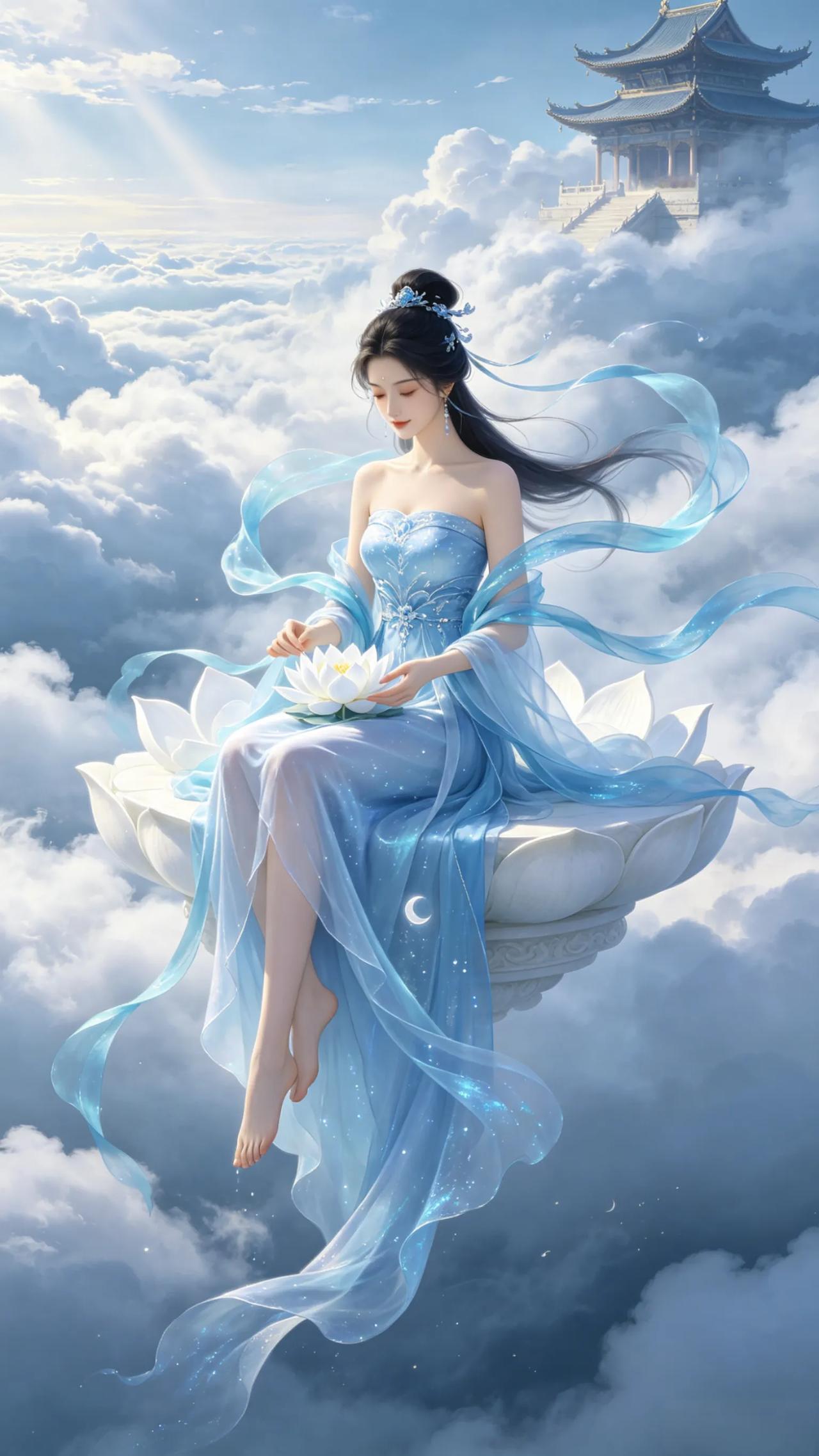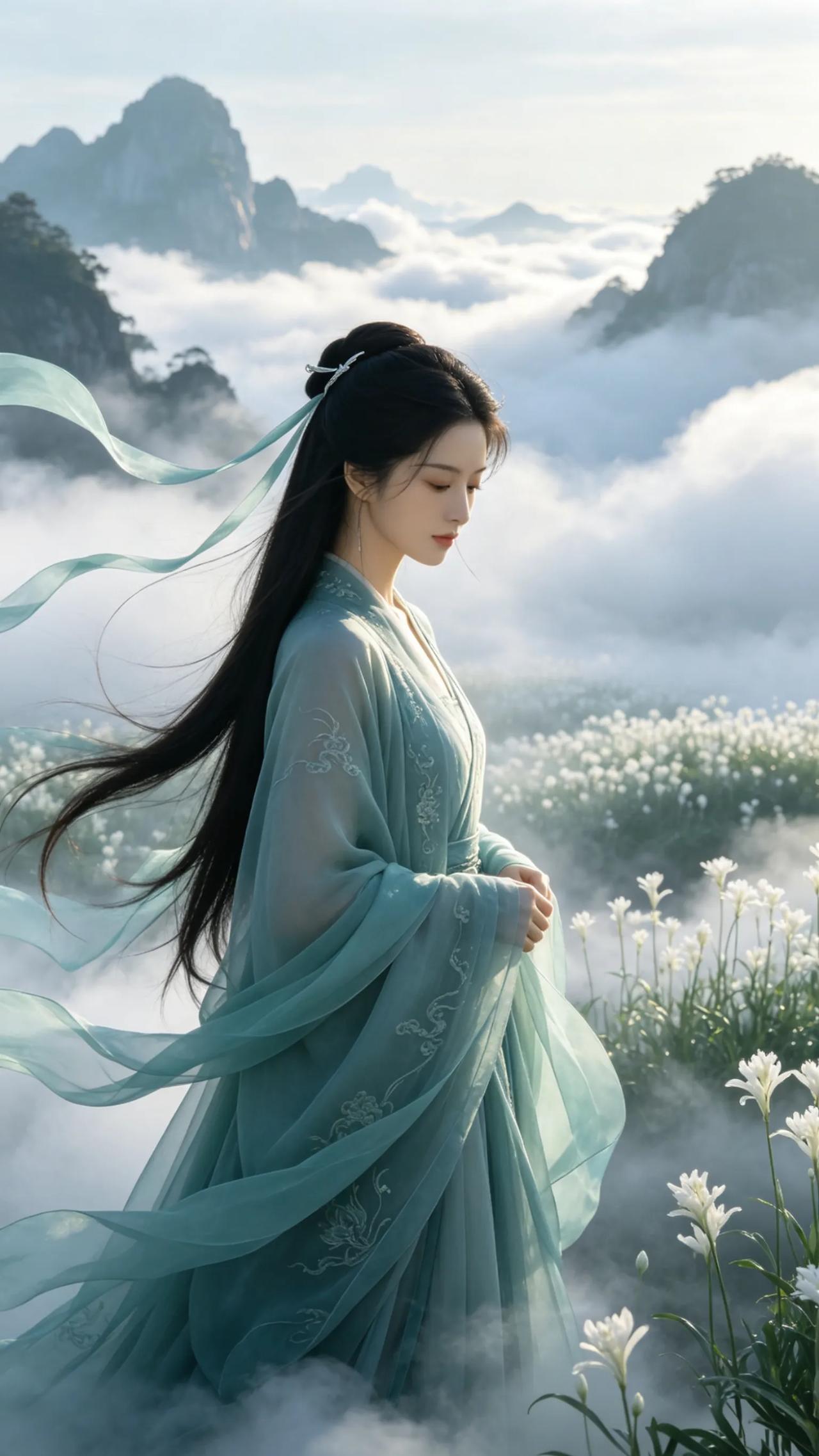 仙气飘飘的白衣神女,AI画出了我心中的仙侠白月光。