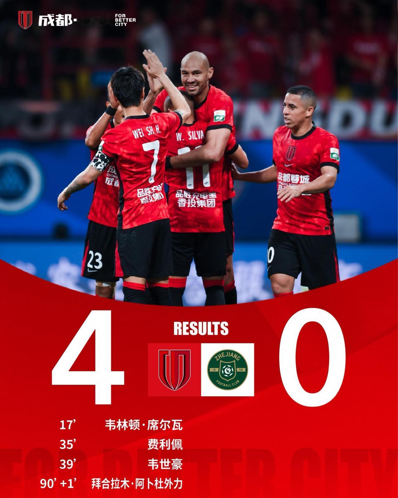 本赛季的中超谁还能阻挡成都夺冠? 就目前来看,好像真没有!成都主场4-0大胜浙江
