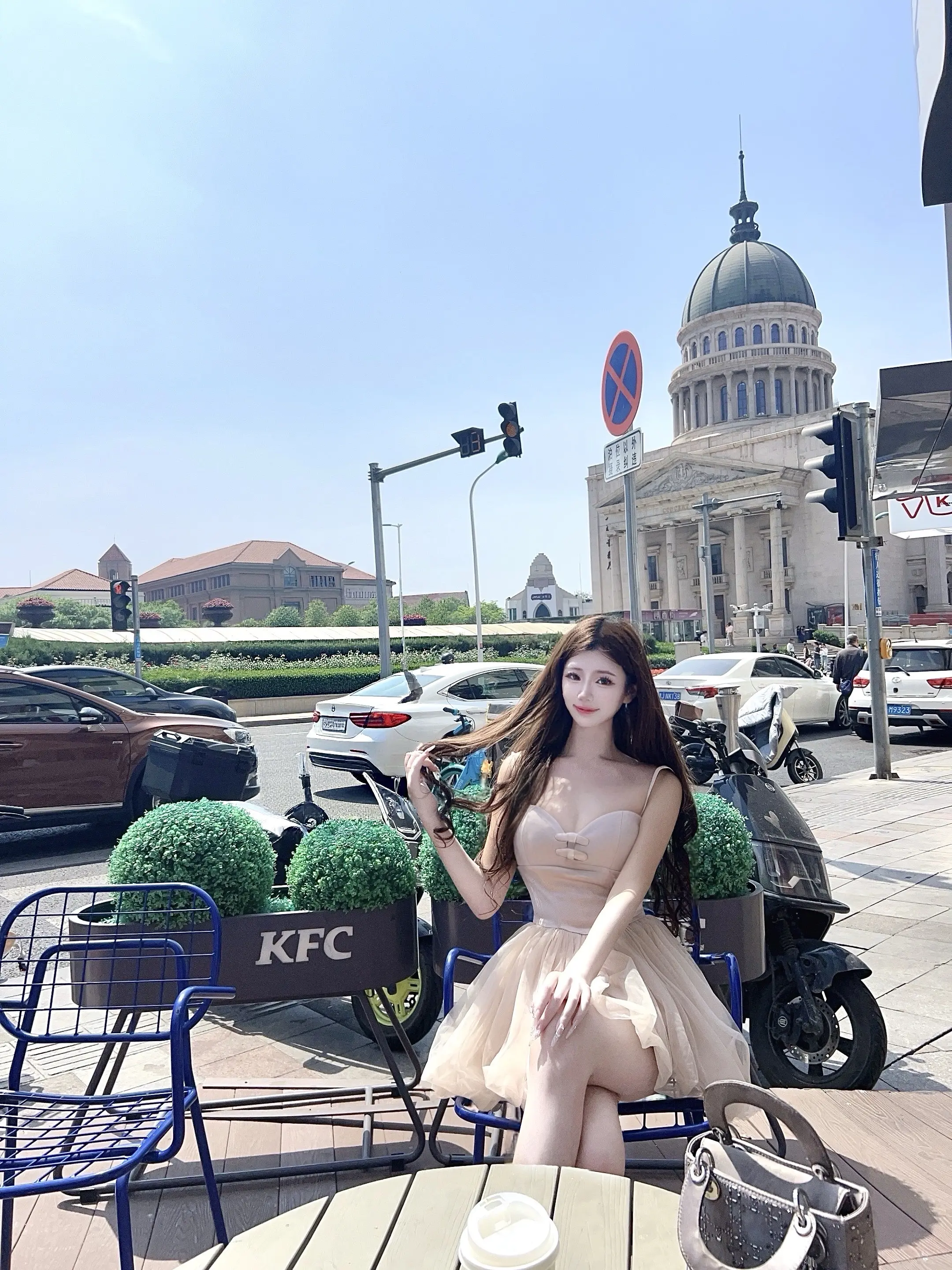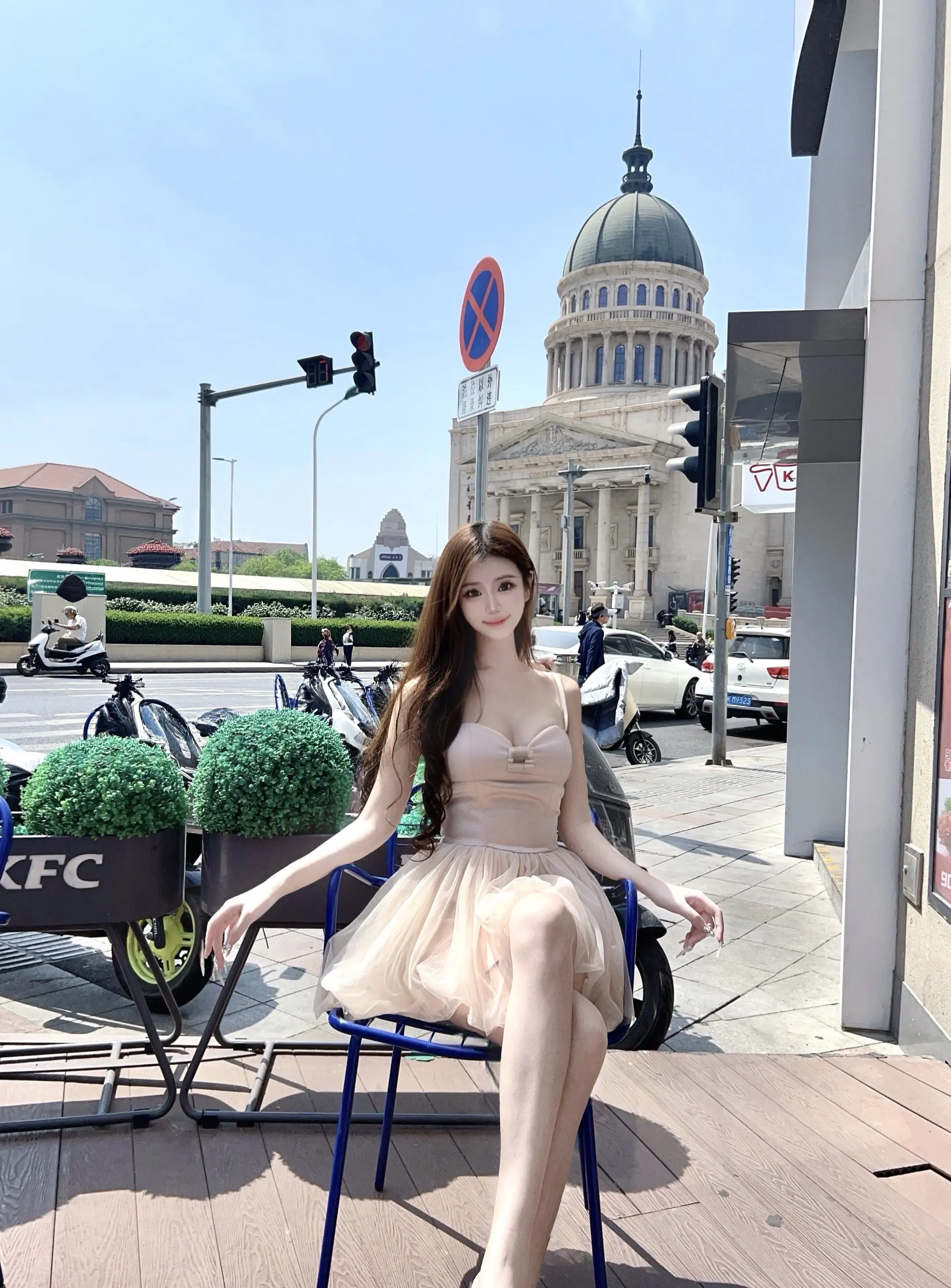 姐妹情深,旗袍相伴,漫步在繁华街头。