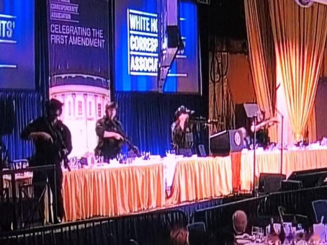在白宫记者晚宴突然一声巨响,特朗普被紧急带离现场。