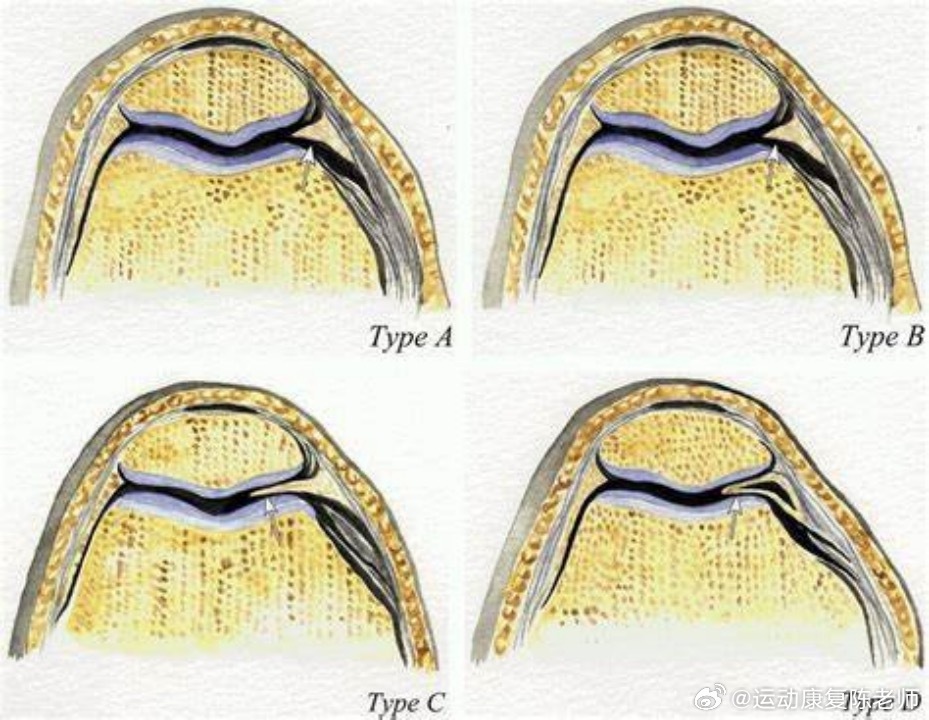 ✅【滑膜皱襞综合征的分型】膝关节滑膜皱襞综合征的Sakakibara分类系统,是基于滑膜皱襞的形态和其对膝关节功能的影响,进行分类的。