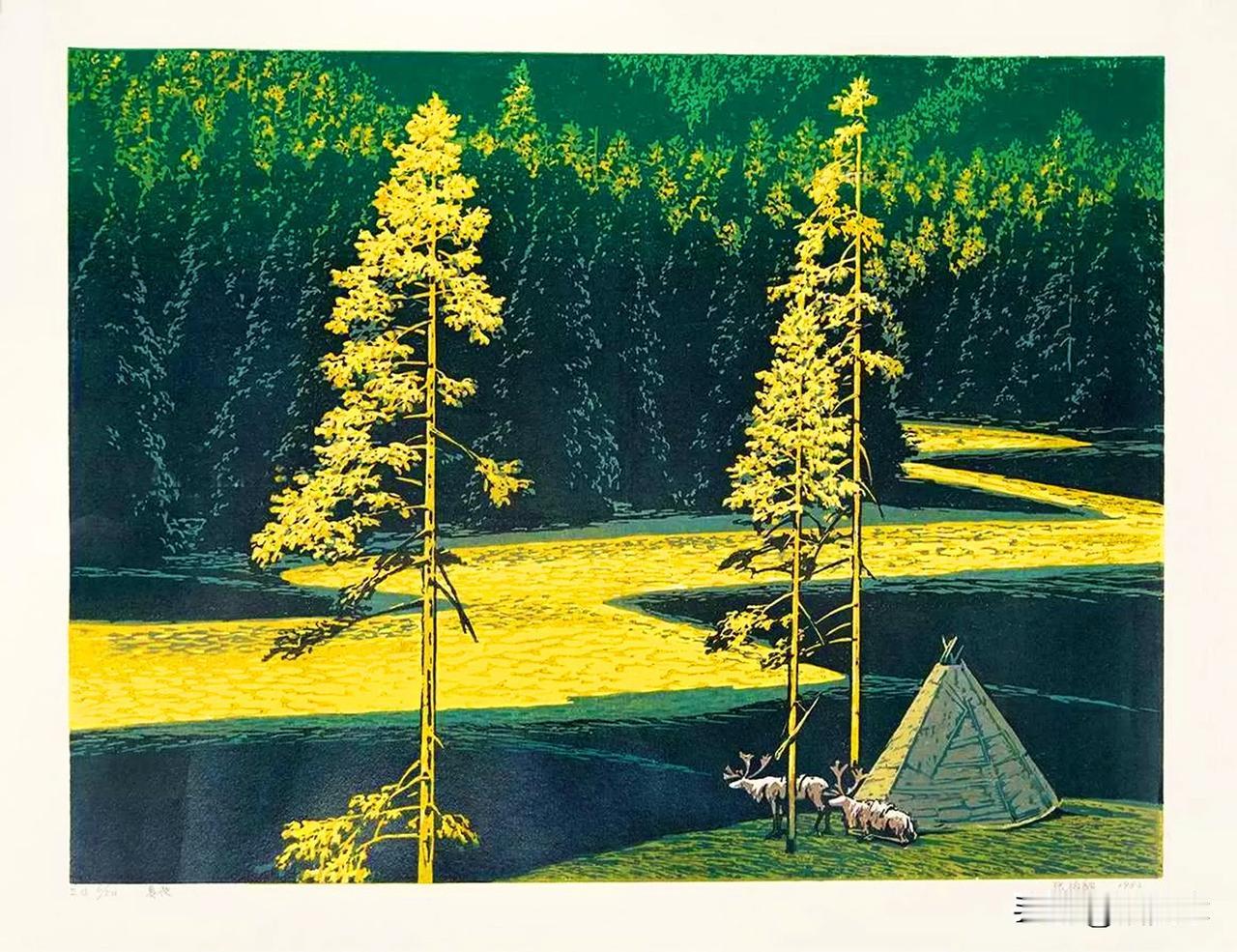 它既保留了张祯麒一贯的开阔大气的边域审美,又多了岁月沉淀后的平和、通透与抒情性,是他草原主题版画里最治愈、最具诗意代表性的作品。