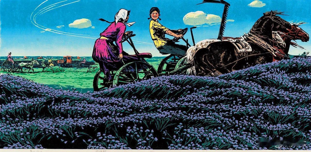 北大荒版画里的夏日草原,漫山黄花漫山温柔