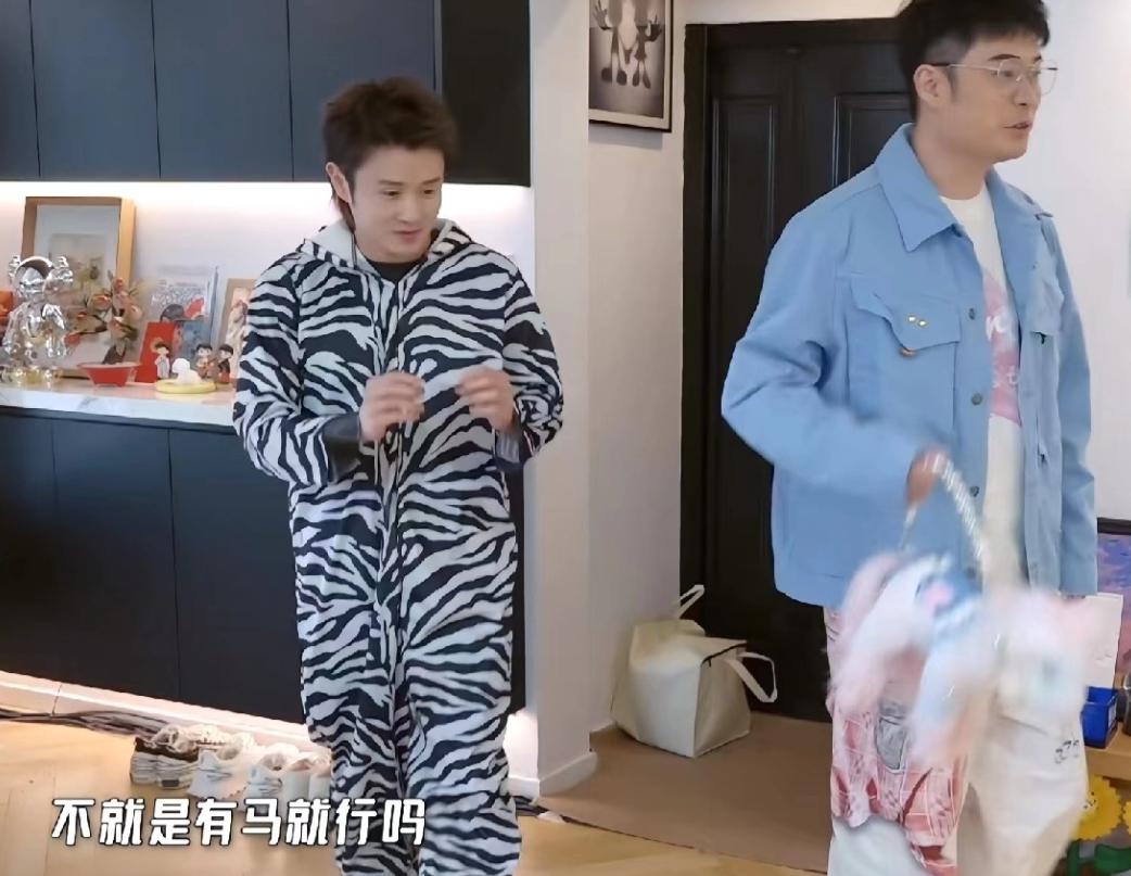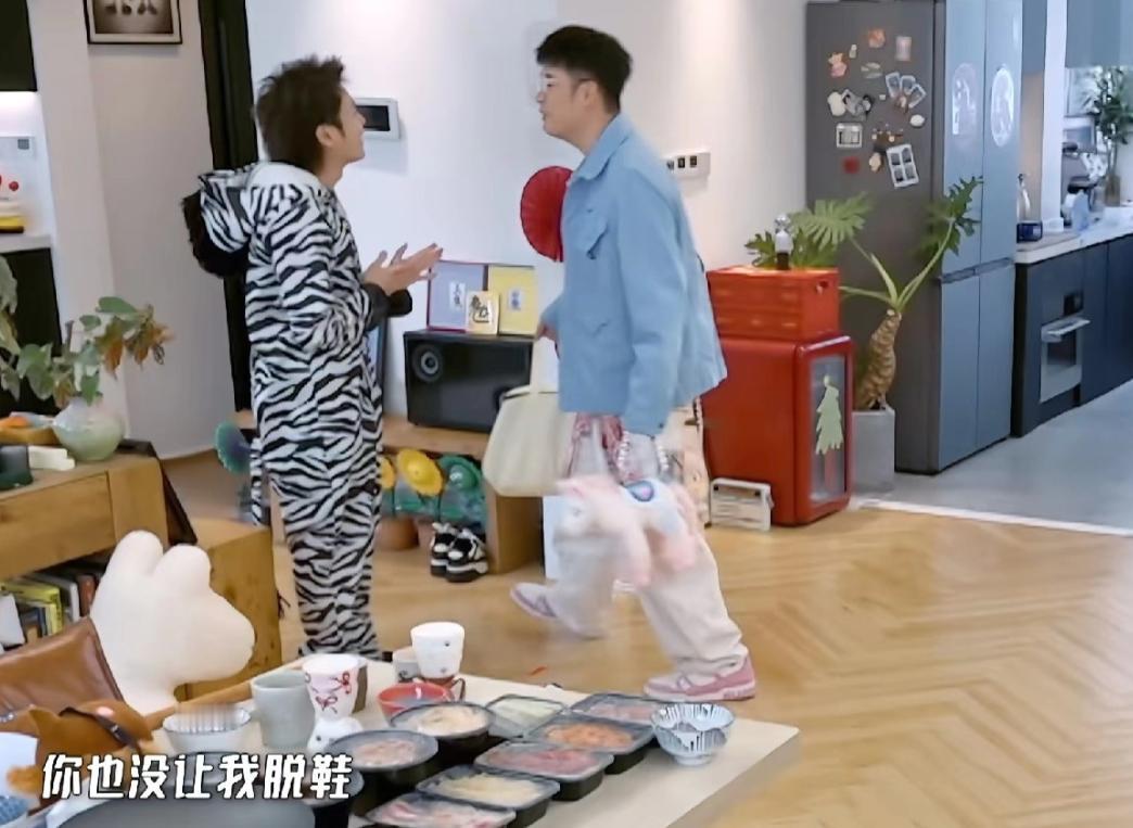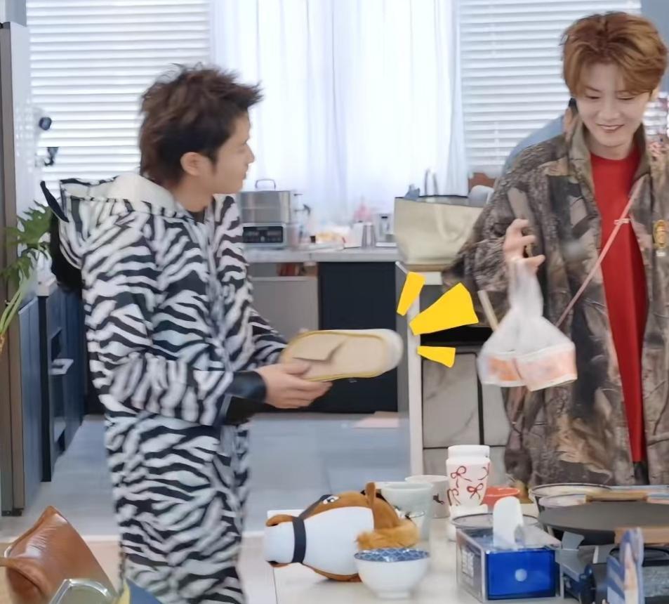 他看着鹿晗大步流星的身影,无奈又好笑,干脆拿起一双拖鞋,追着鹿晗在屋里跑,用这种轻松幽默的方式,暗示对方需要换鞋。