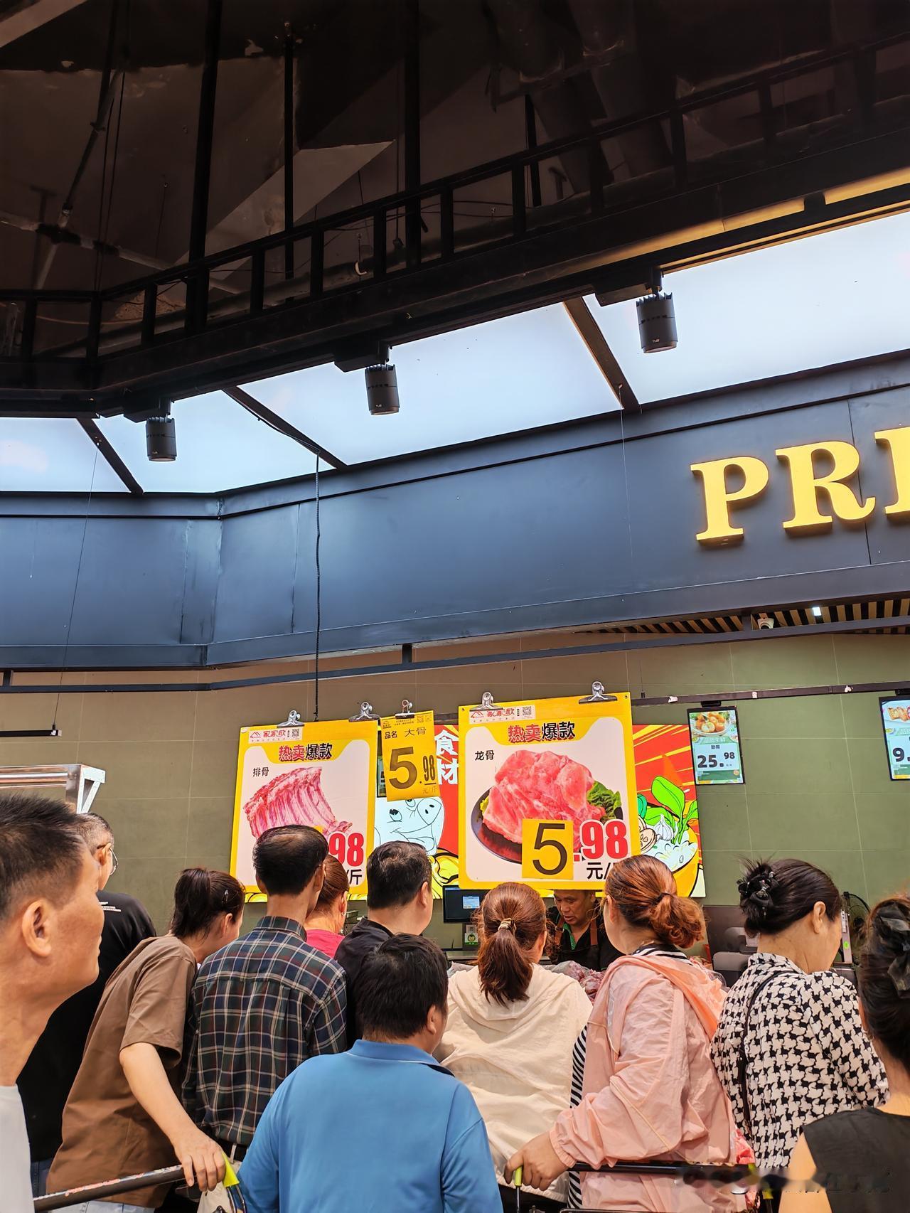 今天早上八点多去超市买菜,我以为我起的早呢?我来到肉类区,看到猪肉超级便宜,有2.98元/斤的上前肉,也有4.98元/斤的五花肉,猪脚5.98元/斤,因为便宜,所以围满了人,本来想买个猪脚,都挤不进去,我在外围等了几分钟,终于挤进来了,猪脚没有了,有些人还抢了好几个,看到好多人购物车上放半篮筐肉,不知道还以为她们去搞批发呢?
