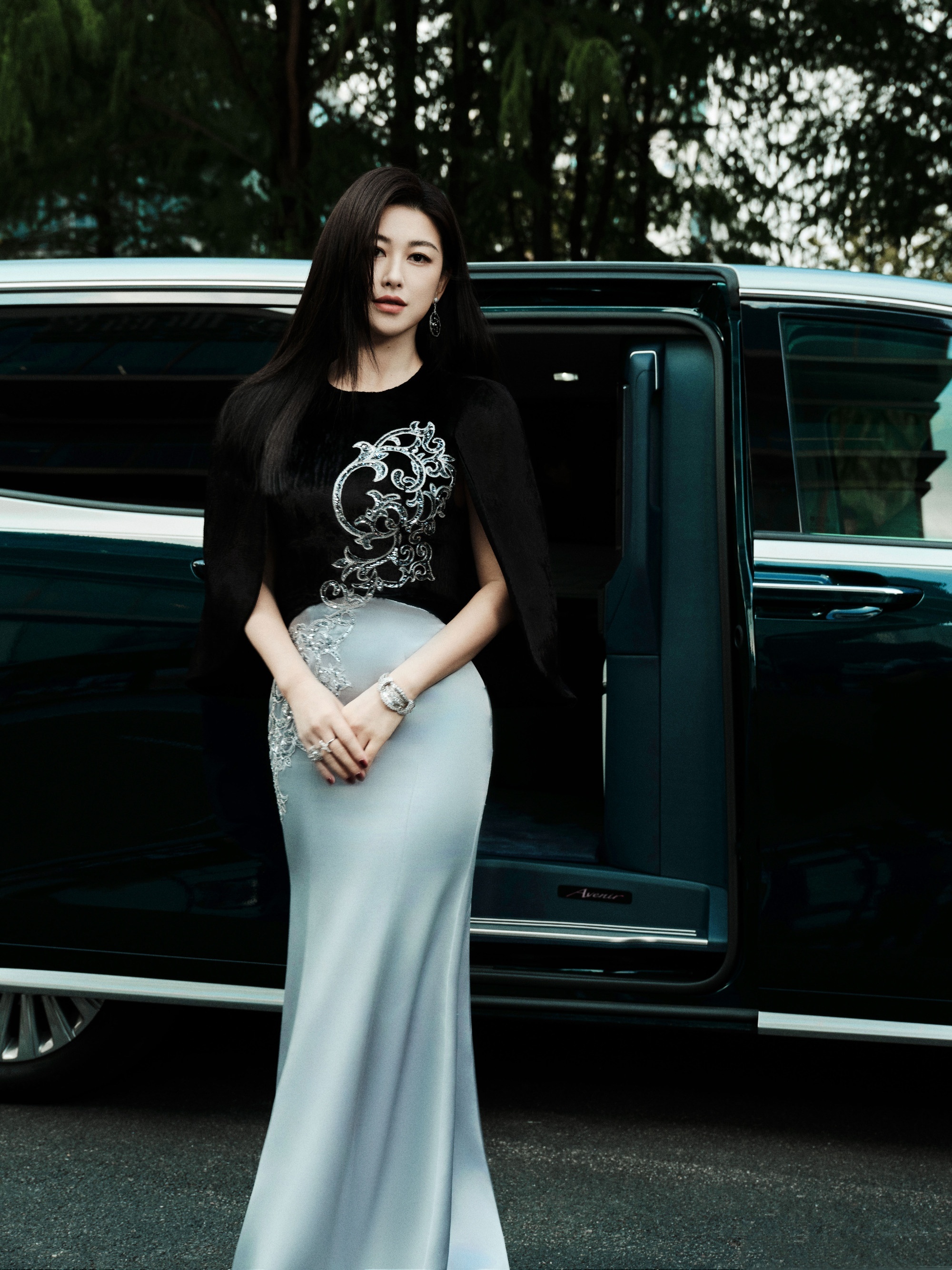 朱珠好适合黑色,一组丝袜妆造美腿画报写真。朱珠
