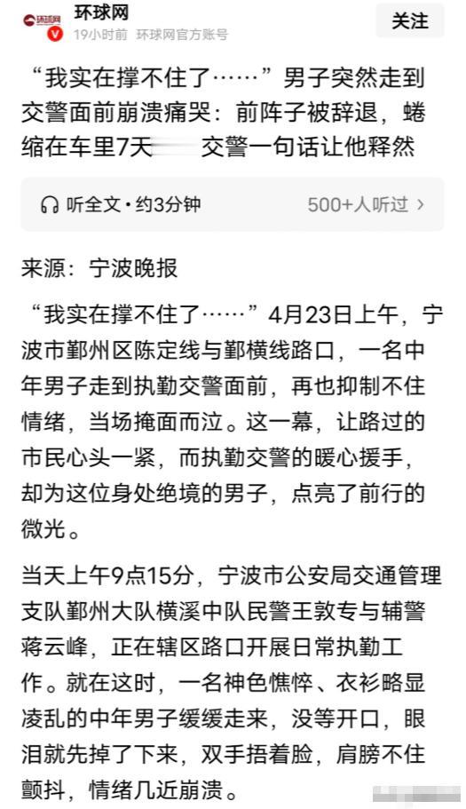 “男人有泪不轻弹!”浙江宁波,男子突然被公司辞退,在车里煎熬了7天,不想告诉家人