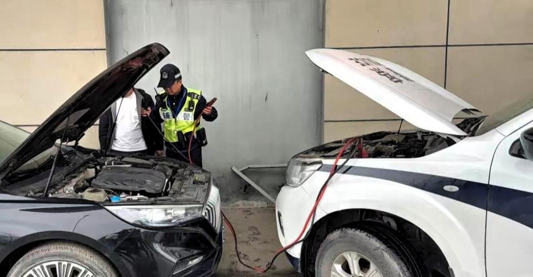 两人分工合作,一人留在原地陪着男人,另一人快速跑到附近的汽修店,借来搭电工具,匆匆赶回男人的车旁。