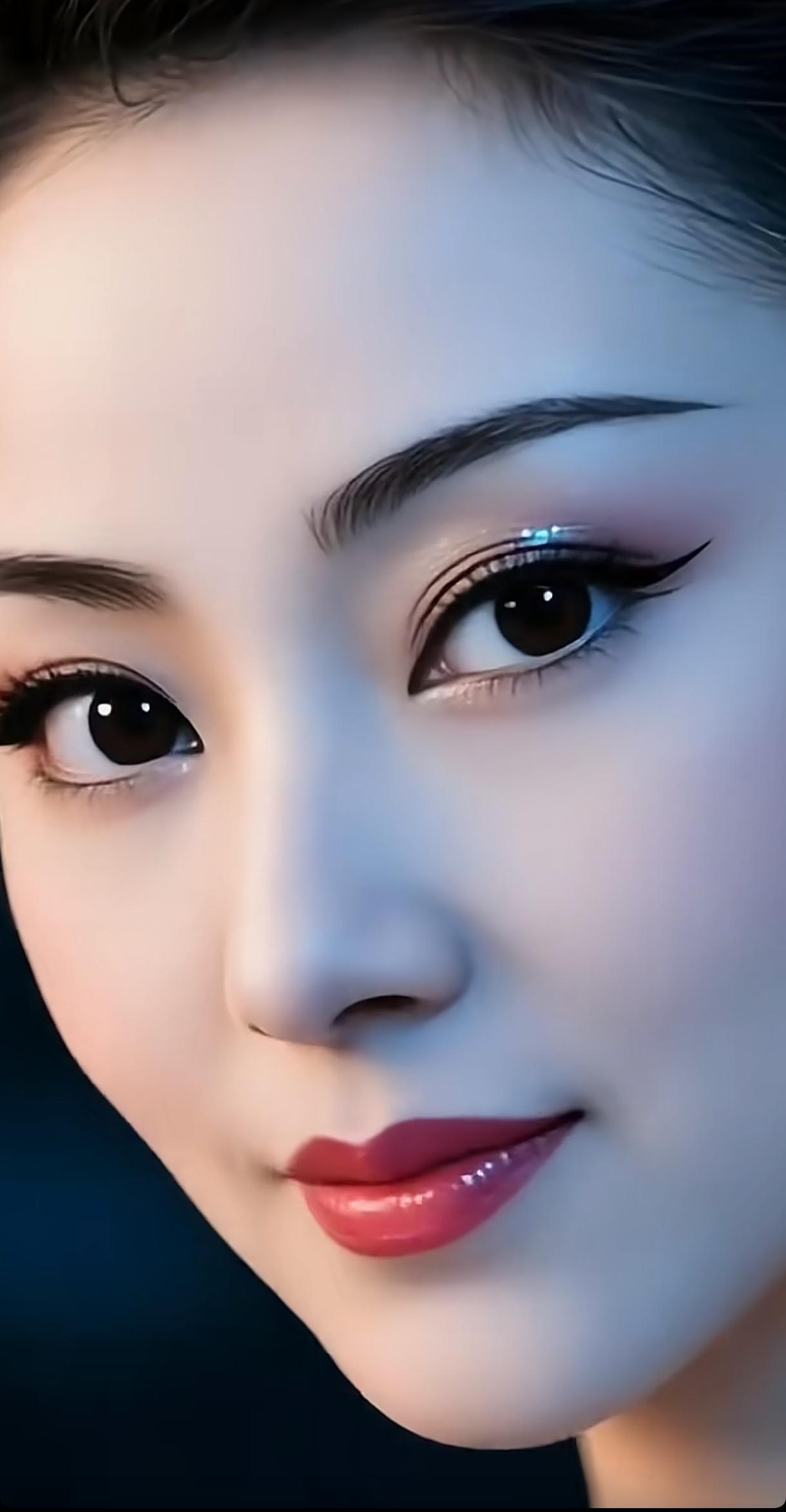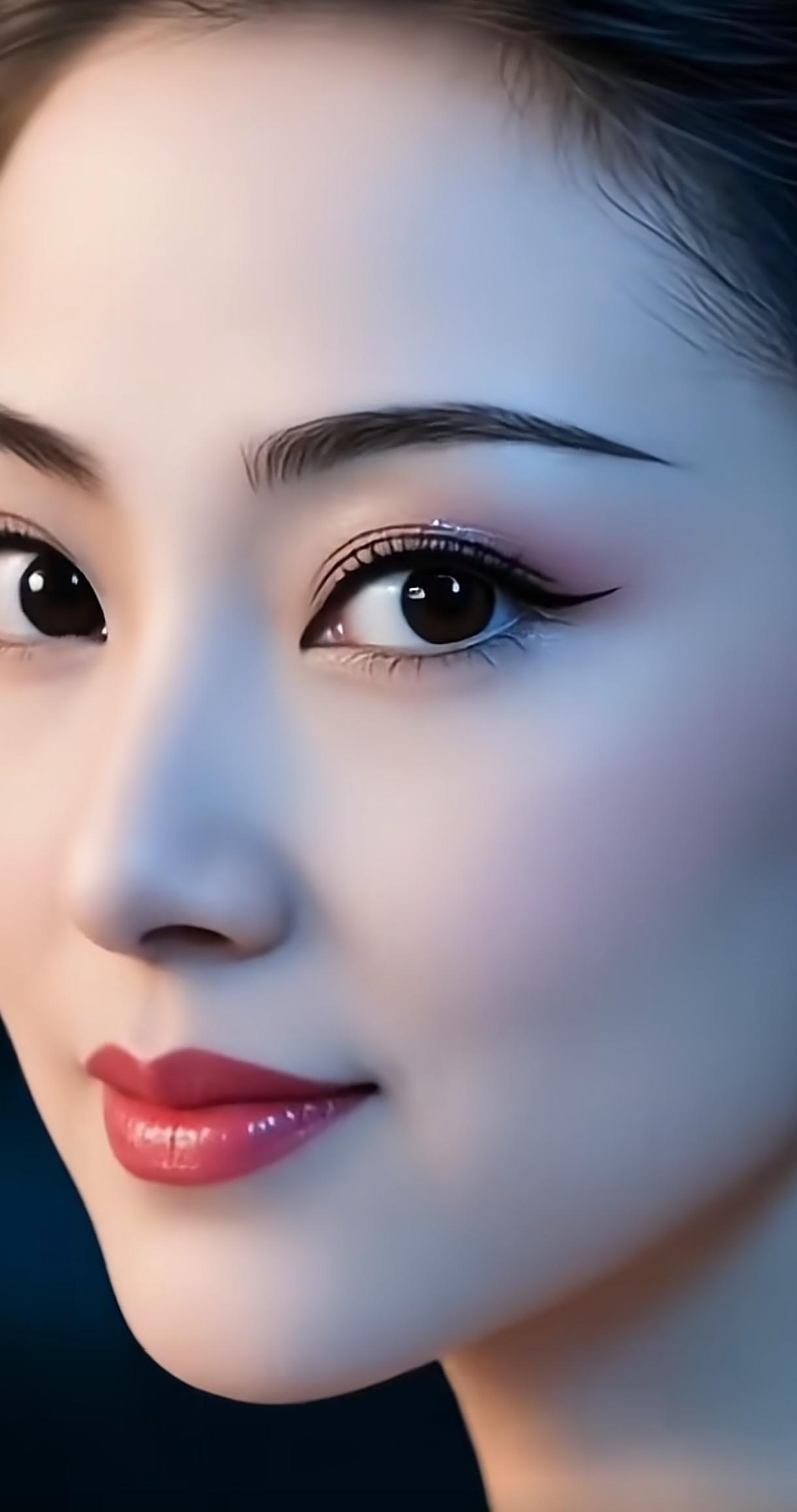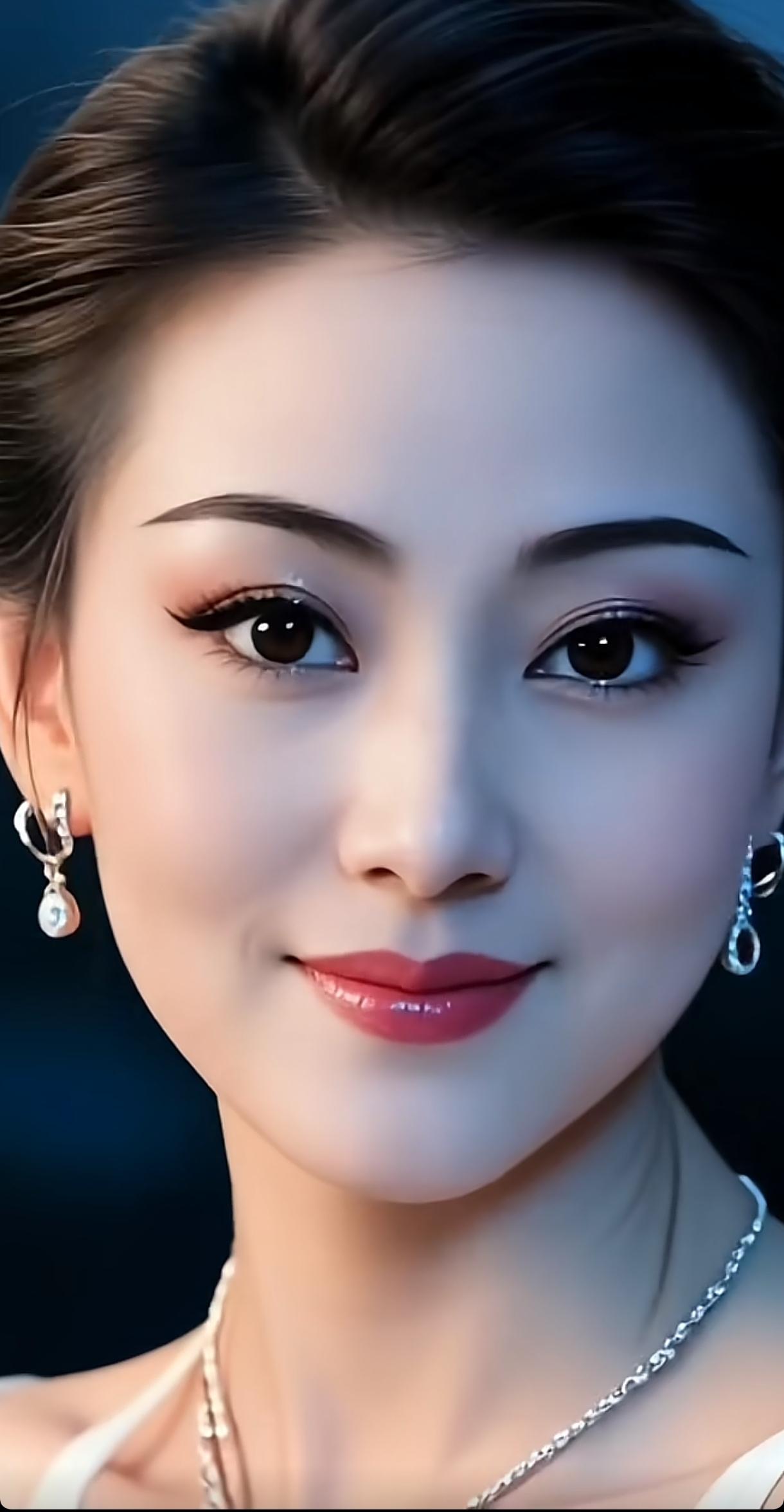 优雅黑发,红唇微启,闪耀的珠宝点缀,尽显迷人魅力。