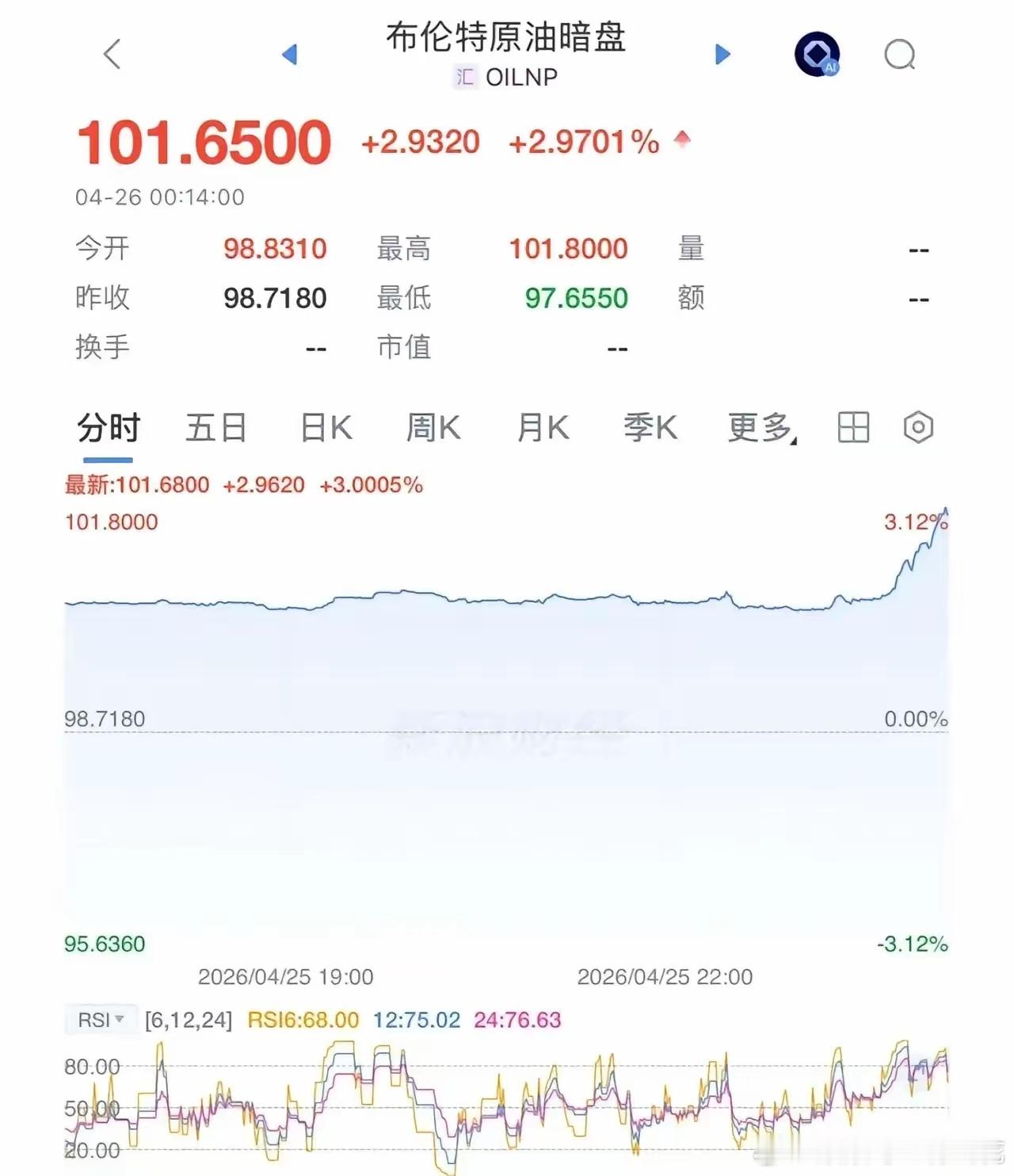 不谈了!朗子拒绝谈判,硬刚川普,周一油价又要上天凉凉,这油价怕是降不下去了,凌晨看到消息,朗子那边的外长已经离开巴铁,表示因为美方对霍尔木兹海峡的封锁,已经破坏了双方的谈判基础,不谈了,而川普也表示特使和女婿不去了,取消了,川普觉得自己掌控全局,朗子没有任何筹码。不过朗子也是,你搁国际航道收费,还埋水雷,换谁谁不揍你啊,你要围起来收费,那阿曼是不是也要收费,马六甲海峡是不是也要收费?海洋公约明确规定用于国际航行的海峡,沿岸国不得征收通行费,你这么一搞,又布雷又收费的,不仅川普要干你,其他的估计离干你也不远了。现在没有谈判基础,两边又你来我往,川普放话后原油暗盘直线拉升一波,目前布油暗盘已突破101美元,拉升近3个点,周一要是两边再不缓和的话,估计原油又是一波起飞。你们觉得朗子和川普还能继续干下去吗?