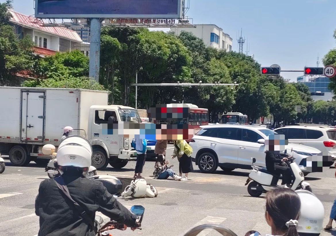 4月25日,网友爆料称:玉林市人民东路广场路口一辆电动车被撞倒,有女子坐在地上。不知道人有没有事啊??同城热点创作计划 玉林