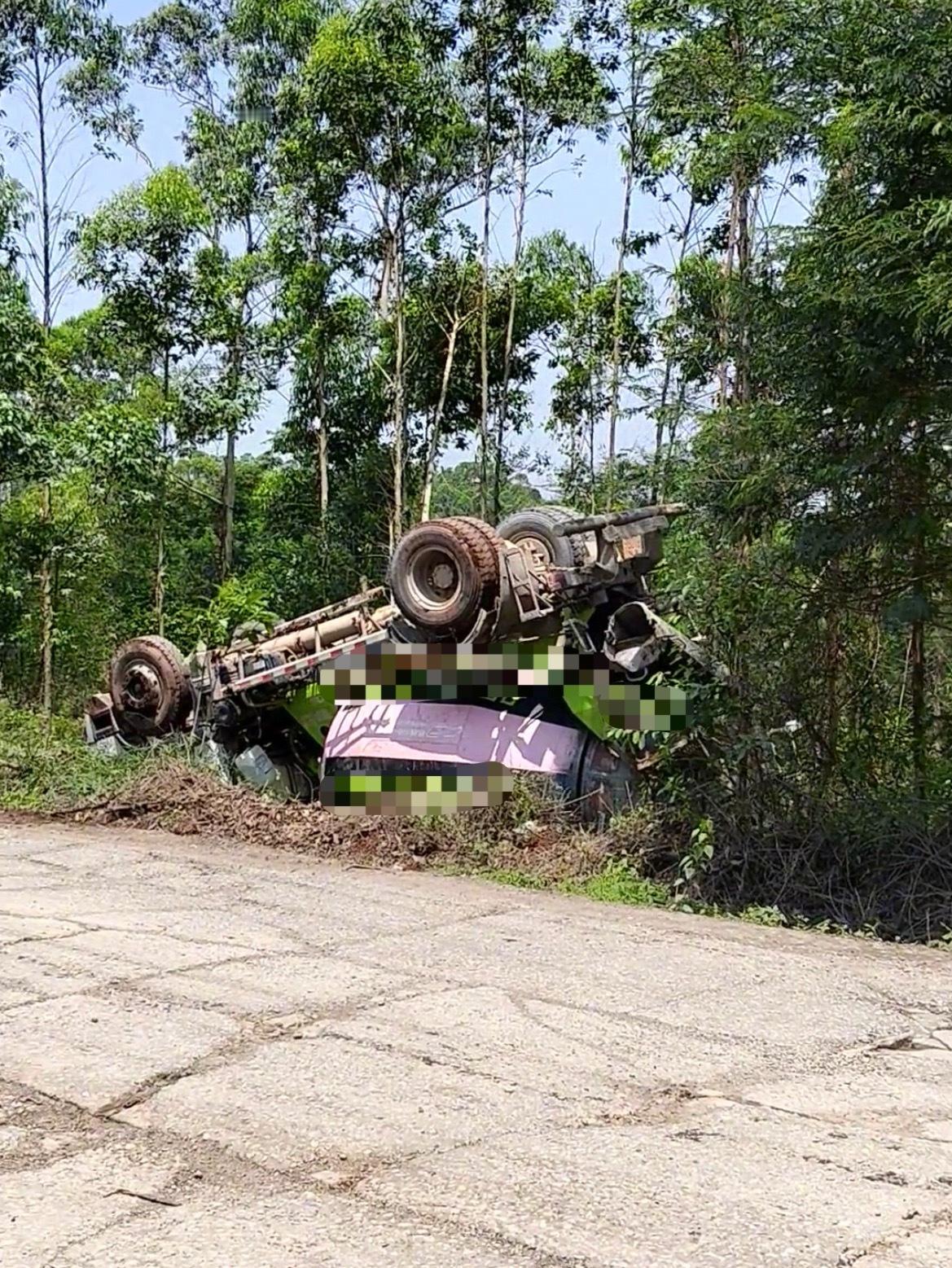 【钦州下某江一搅拌车翻车朝天在路边】