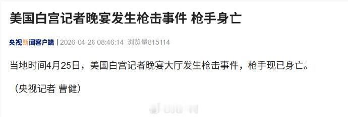 【白宫晚宴枪击事件枪手身亡】当地时间4月25日,美国白宫记者晚宴大厅发生枪击事件,枪手现已身亡。特朗普称枪手已被捕