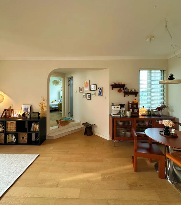 直接从户型图看,不是长方形,而是一截“枪管”加一个“枪把”,整体歪七扭八像个手枪。毛毛妈家就是手枪型的变种。把手枪户型“拆开”,大部分面积都浪费在冗长的走道和古怪的拐角上,连正常的一字型沙发都摆不进去。还导致室内多个房间全挤在一条线上,采光就指望一两个小窗户,大白天在家动不动就得开灯,住久了心理都压抑。
