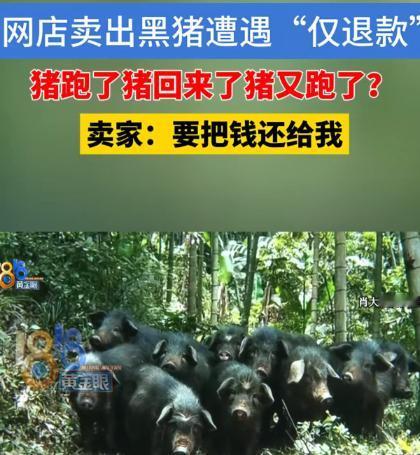 4月24日,浙江杭州,一女子在线上卖土黑猪,一买家以630元/头的价格,在女子的网店下单了3头土黑猪。随后,女子将3头土黑猪配送过去。当天,买家说,猪跑了,跑得比飞机都快,一溜烟就跑没影了。女子安抚说,猪会回来的。买家半信半疑,果然,2天后,猪真就跑回来了。哪曾想,一个星期后,买家又说其中一头猪又越狱了,同时,向平台申请了退货退款,平台竟将630元退给了对方。女子很气愤,认为猪跑了,是买家没看管好,哪有让自己承担损失的道理。又过几天,女子主动联系上了买家,对方说猪又回来了,女子要求对方支付630元。对方先先答应了,后来,钱也没转,电话也不接了。