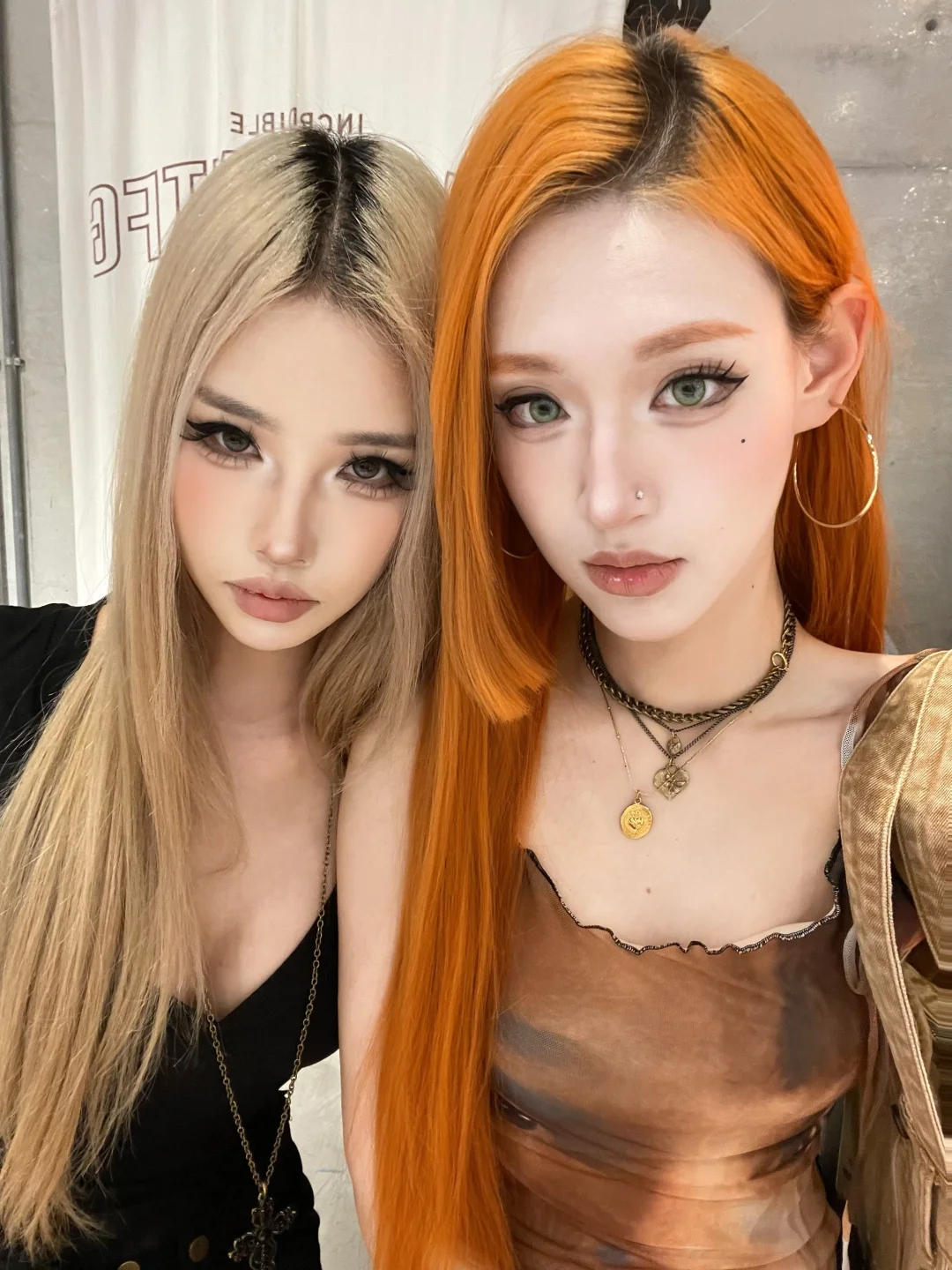 姐妹合照 fyp 闺蜜 双人拍照 发色分享 闺蜜拍照 姐感 金发 脏橘色发色 白羊和处女座