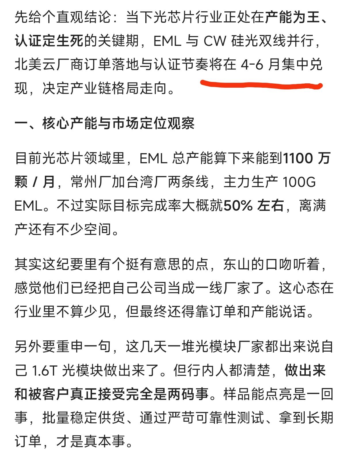 1、北美云厂商订单落地与认证节奏将在4-6月集中兑现,也就是说还可以炒一个5月,最迟6月。