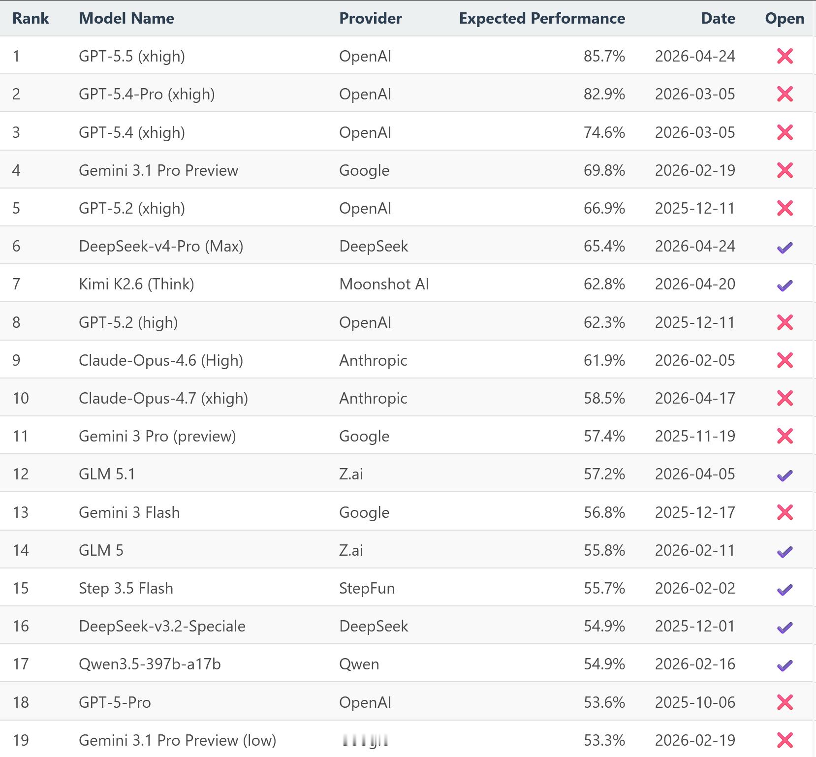 评估大模型数学能力的榜单MathArena里,DeepSeek冲到开源第一且超过Claude-Opus-4.6、4.7了。和kimi2.6差不多。另外这个榜单里OpenAI是真猛。这个榜单只使用大模型没见过的题做评测,所以基本可以杜绝靠训练数据打榜的风险。AI创造营