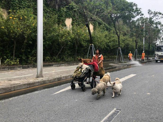 偶遇一个酷酷的狗妈妈,有多少人离深的时候把自己的狗遗弃了,又有多少人的狗走失了被