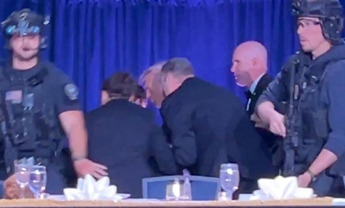4月25日白宫记者协会晚宴突然传出枪响,最新画面显示,特朗普在紧急撤离途中不慎摔倒,最后在白宫特勤人员的搀扶下才踉踉跄跄地撤离晚宴现场。白宫记协晚宴枪手被捕后供述行动目标