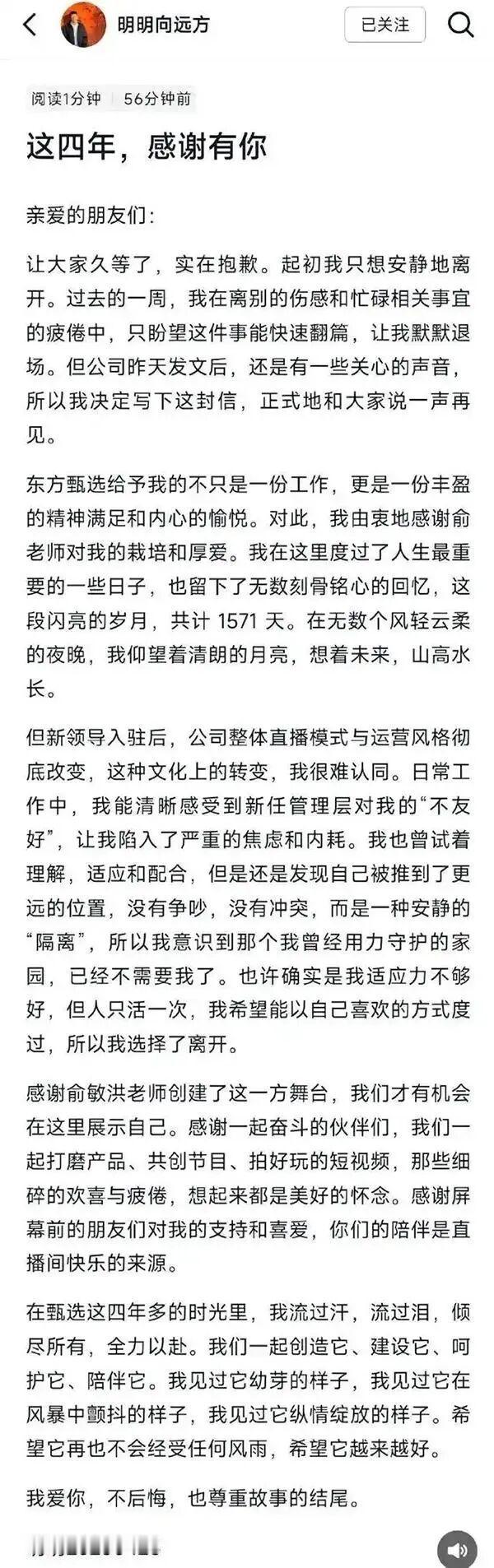 东方甄选四个主播的离开让网友们又展开了一轮热,有意思的事还在后面,有很多喜欢明明的人在董宇辉的评论区下面留言,让他收了明明,也有人不同意他收明明。这些粉丝们可真够操心的了,为啥要替别人去规划人生呢?