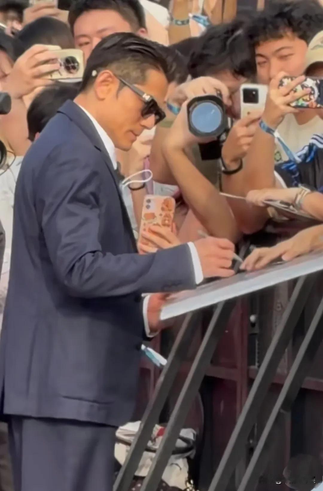 老牌的艺人都没啥架子,在一声声的“城城,你好帅”的高呼中,郭富城挨个的给人签名,这么大咖位还这么接地气,少见![赞]