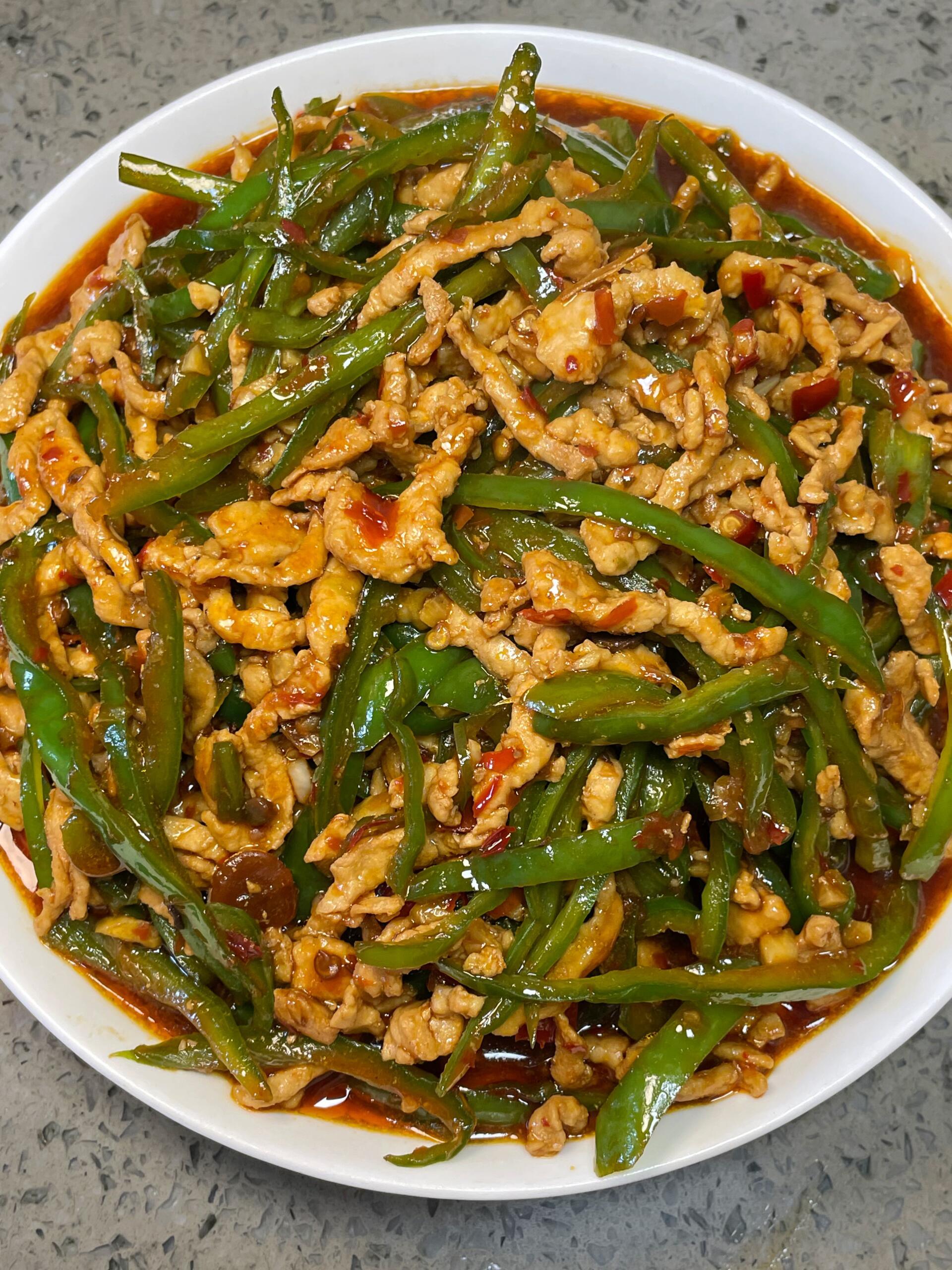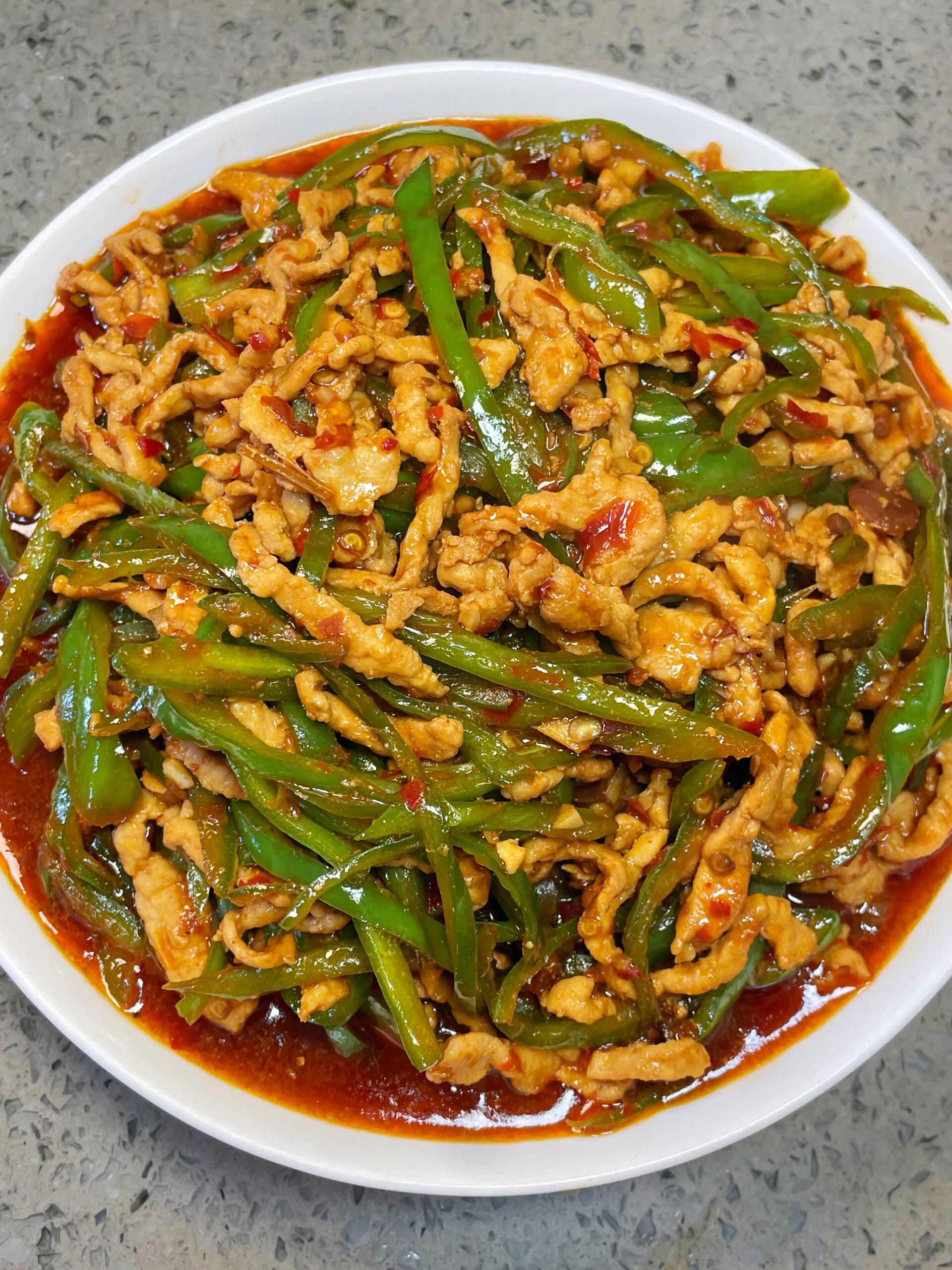 腌好的肉丝滑嫩入味,一点不柴,咬一口鲜嫩多汁;青椒脆爽解腻,还带着淡淡的鲜辣,裹上浓郁的酱汁,香到直迷糊。不管是配米饭、拌面条,都巨合适,做法简单到新手也能零翻车,家常餐桌必备!