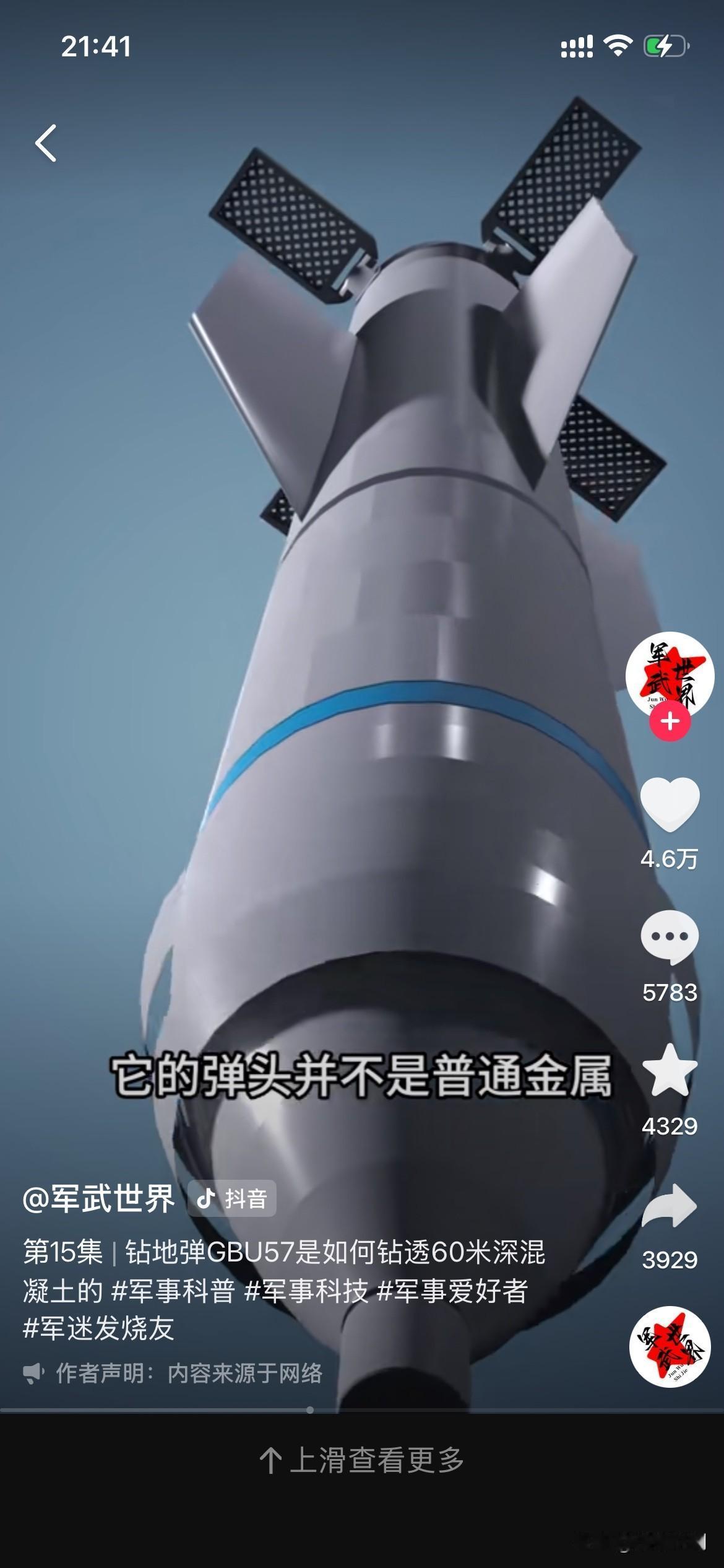 GBU-57外号“炸弹之祖”,美军现役最强常规钻地弹。